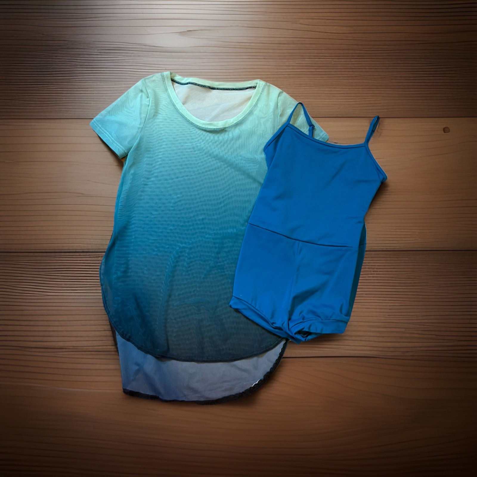 Weissman Mesh Teal Ombre Shirt Unitard Med Child MC Lyrical Jazz Contemporary