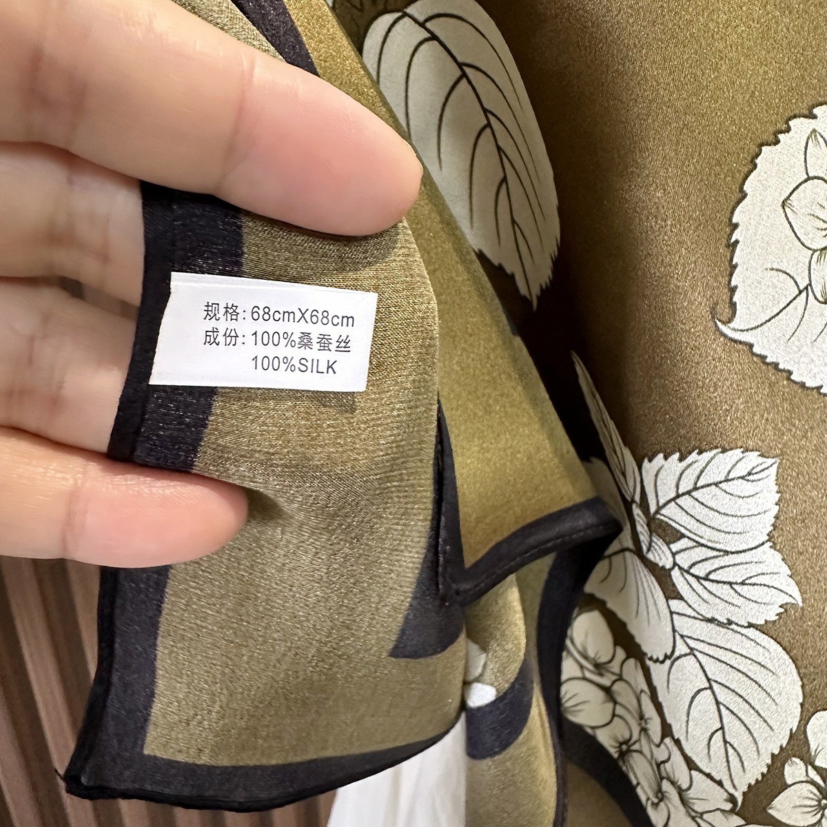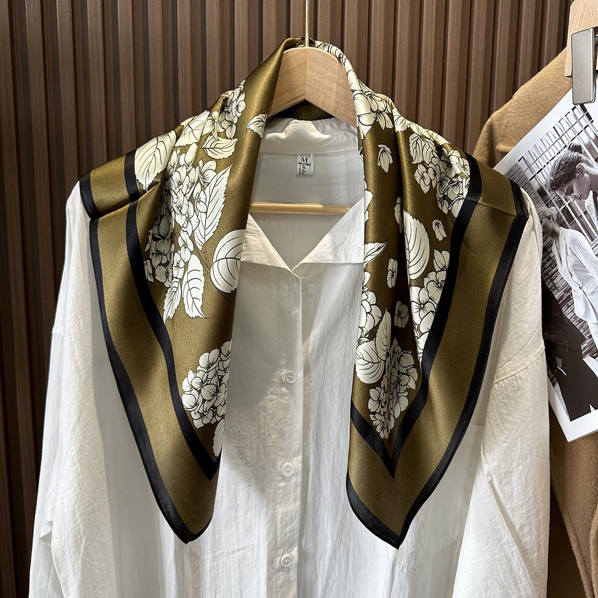 100 Mulberry Silk 27 Square Scarf Women Neckerchief Wrap Brown White Flowers