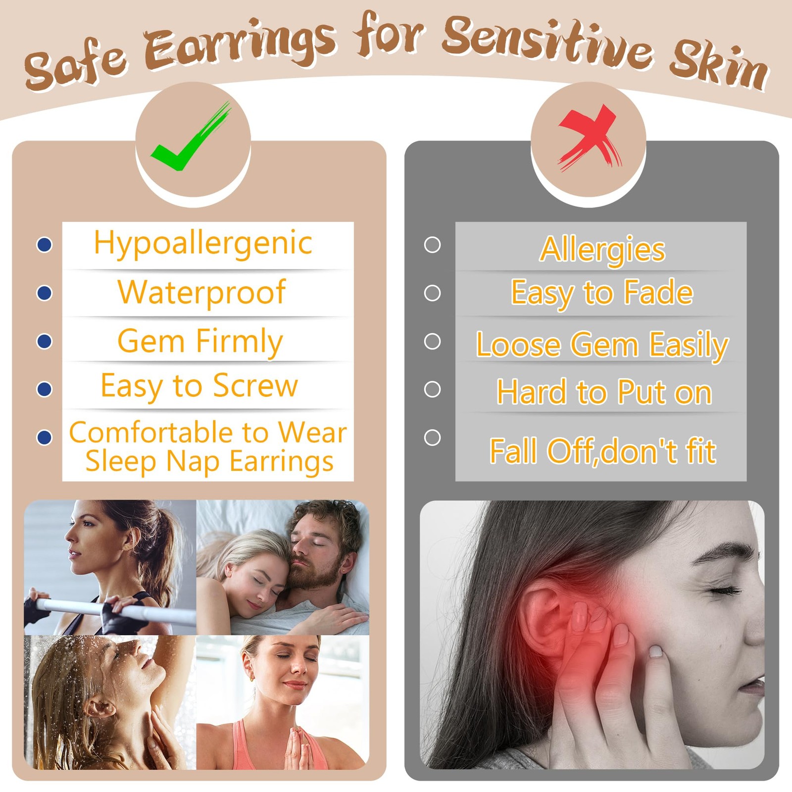 8 Pairs Flatback Stud Earrings for Women 14K Gold Filled stud Earring Sets for M
