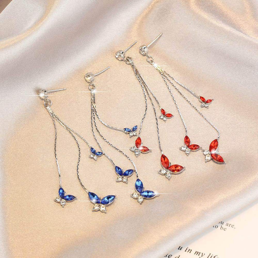 как выглядит Crystal Butterfly Pendant Tassel Earrings Long Zircon Butterfly Drop Dangle Earr фото