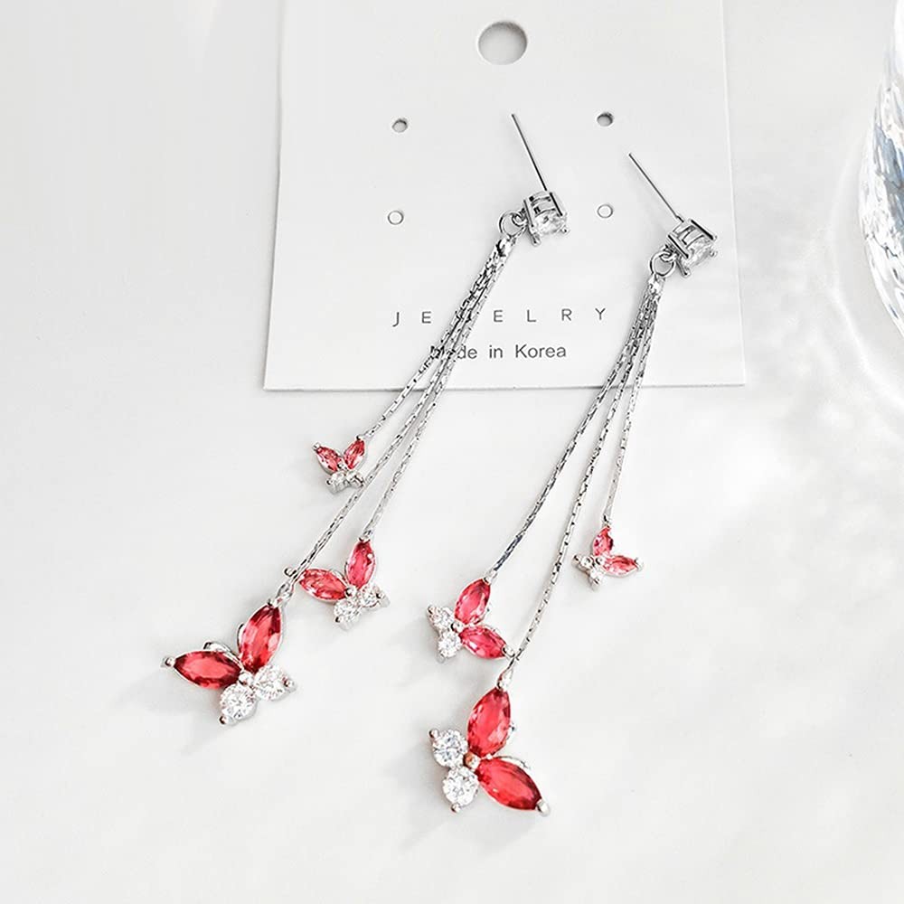 Crystal Butterfly Pendant Tassel Earrings Long Zircon Butterfly Drop Dangle Earr