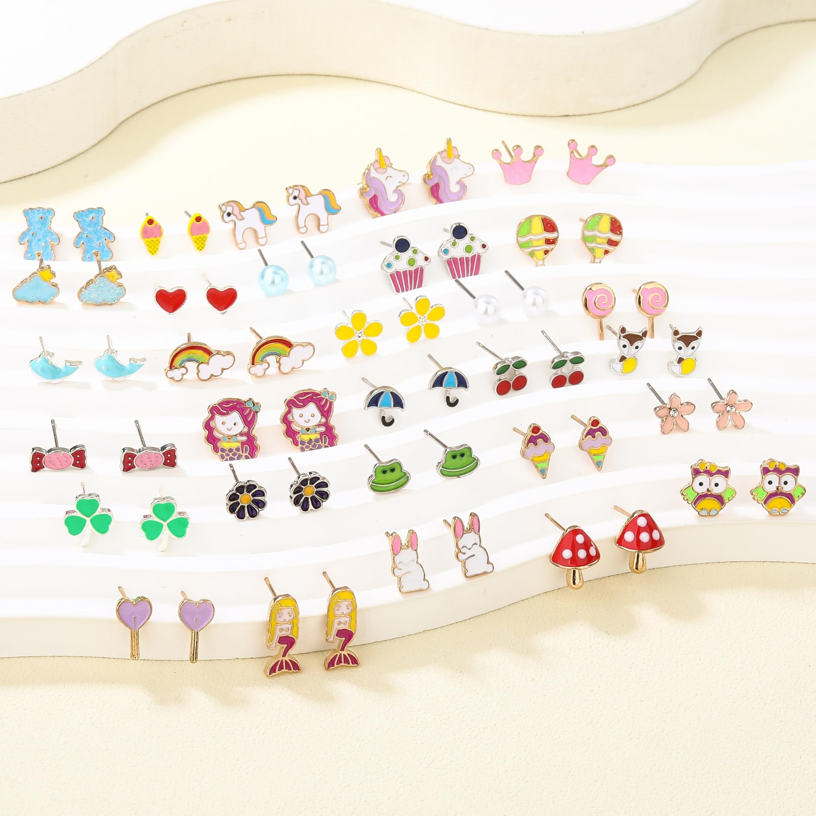 30 Pairs Cute Funny Hypoallergenic Stud Earrings Set for Women Sensitive Ears Wi