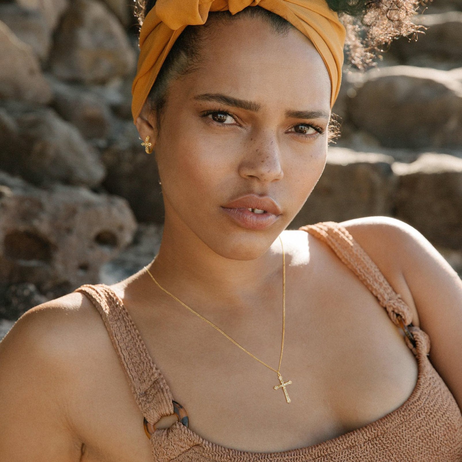 Gold Cross Necklace for Women, Dainty Pendant, Trendy 14K Gold Plated Simple Jew