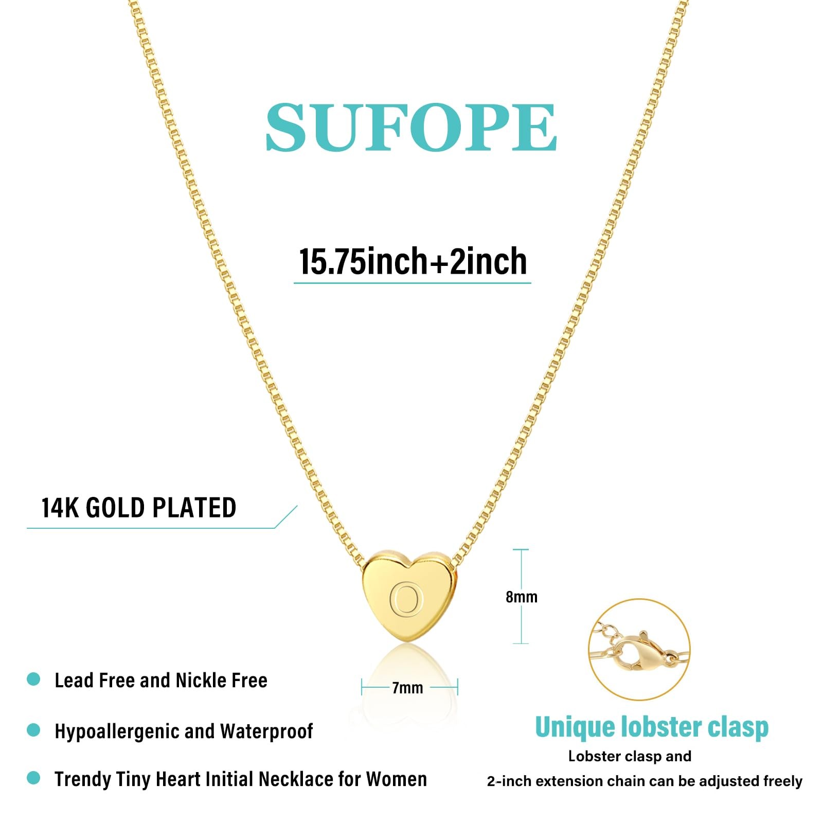 Gold Heart Initial Necklace for Women,14K Gold Plated Initial Necklaces Heart Al