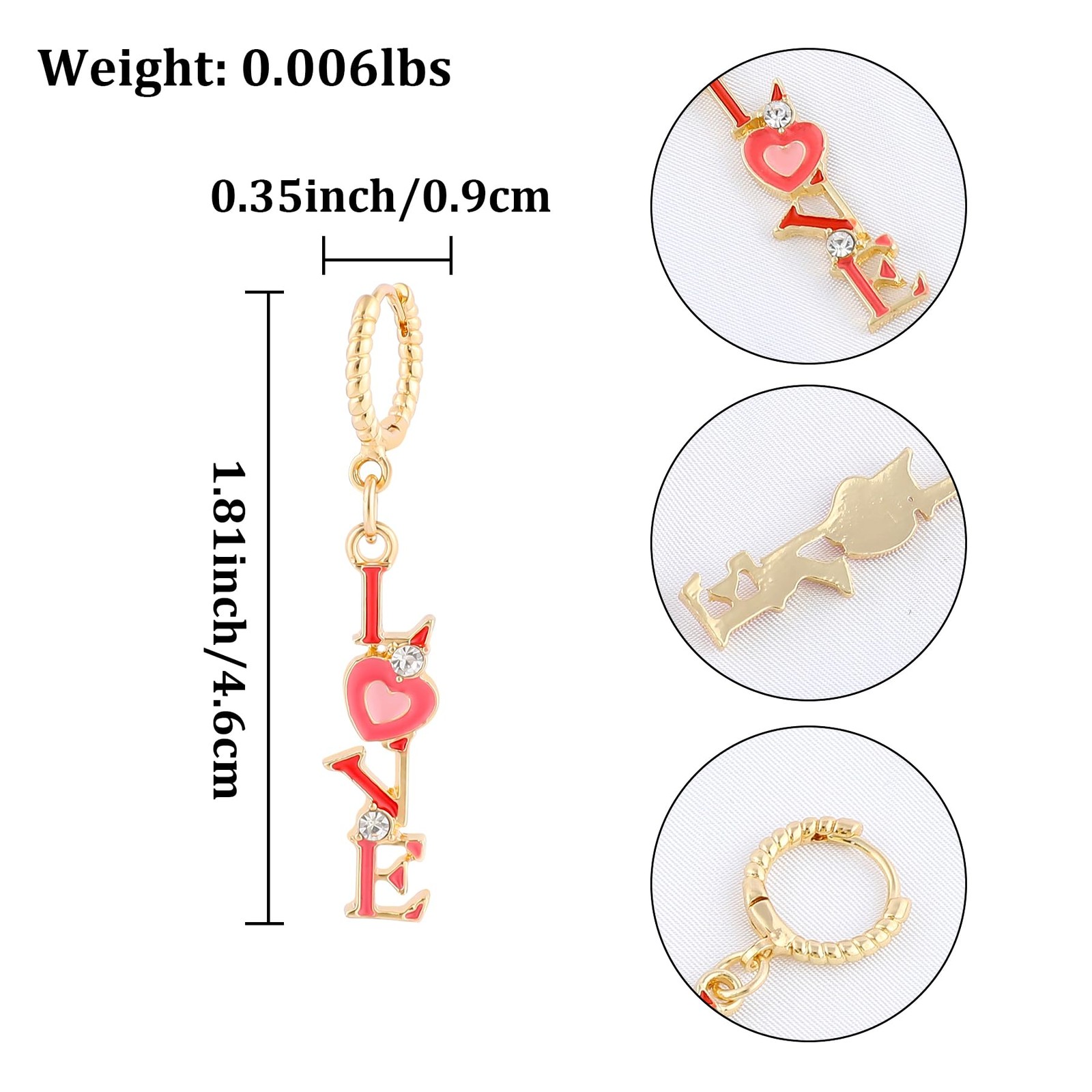 как выглядит Pink LOVE Hoop Earrings for Women, Dangle Pink Enamel LOVE Huggie Hoop Earrings фото