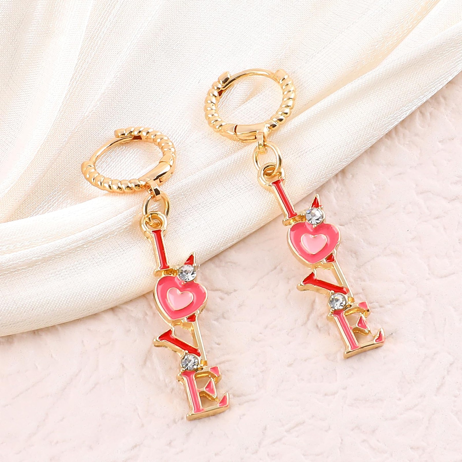 Pink LOVE Hoop Earrings for Women, Dangle Pink Enamel LOVE Huggie Hoop Earrings