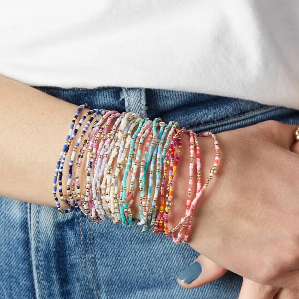 Dainty Gold Plated Tiny Blue Rice Beaded Stack Bracelets Sets for Women,Stackabl