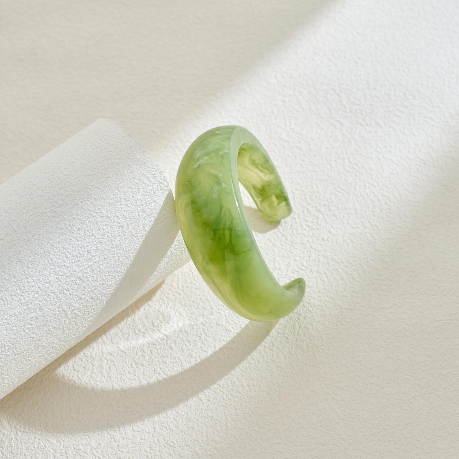 как выглядит Green Acrylic Resin Cuff Bracelet for Women Chunky Translucent Dome Open Cuff Br фото