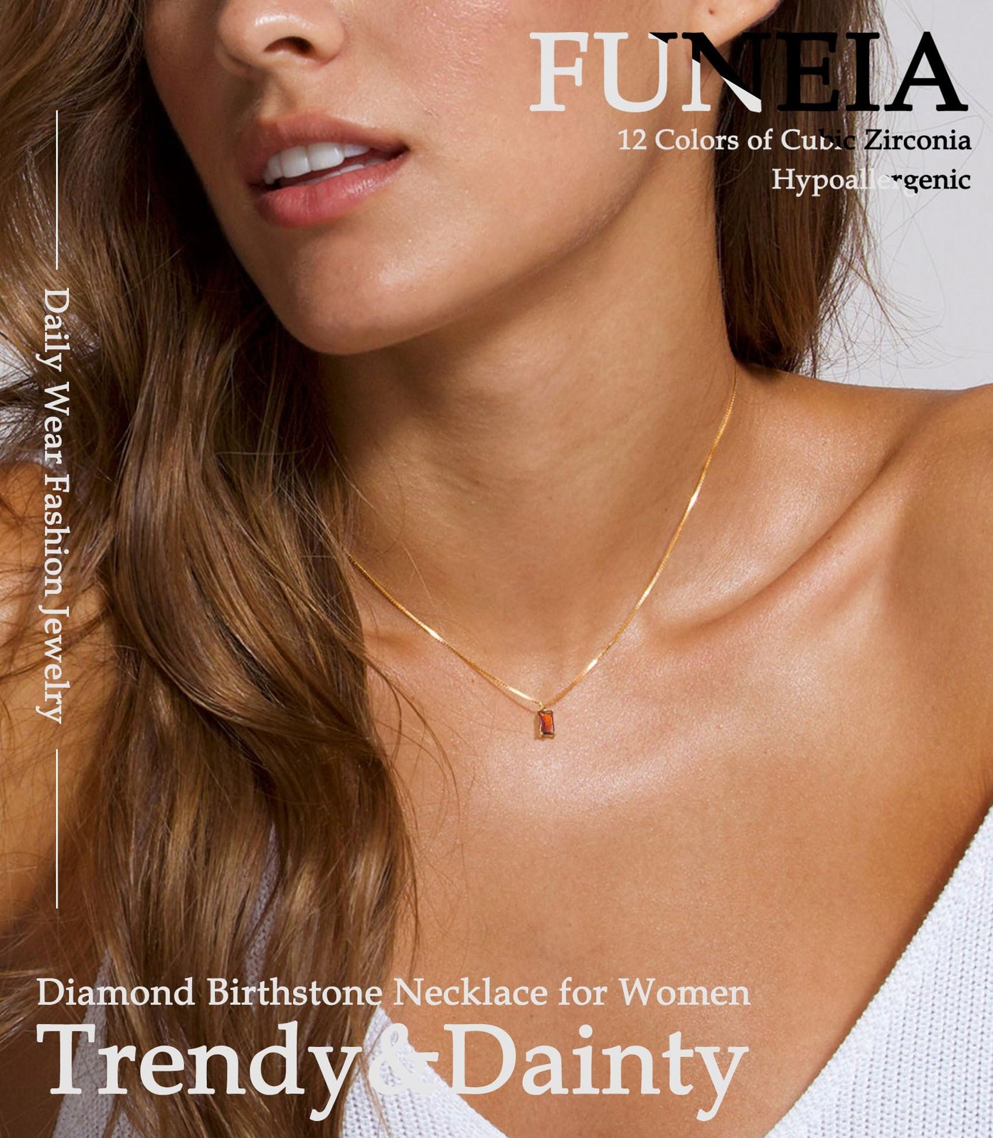 Diamond Necklaces for Women 14K Gold Plated Emerald Birthstone Necklace for Wome