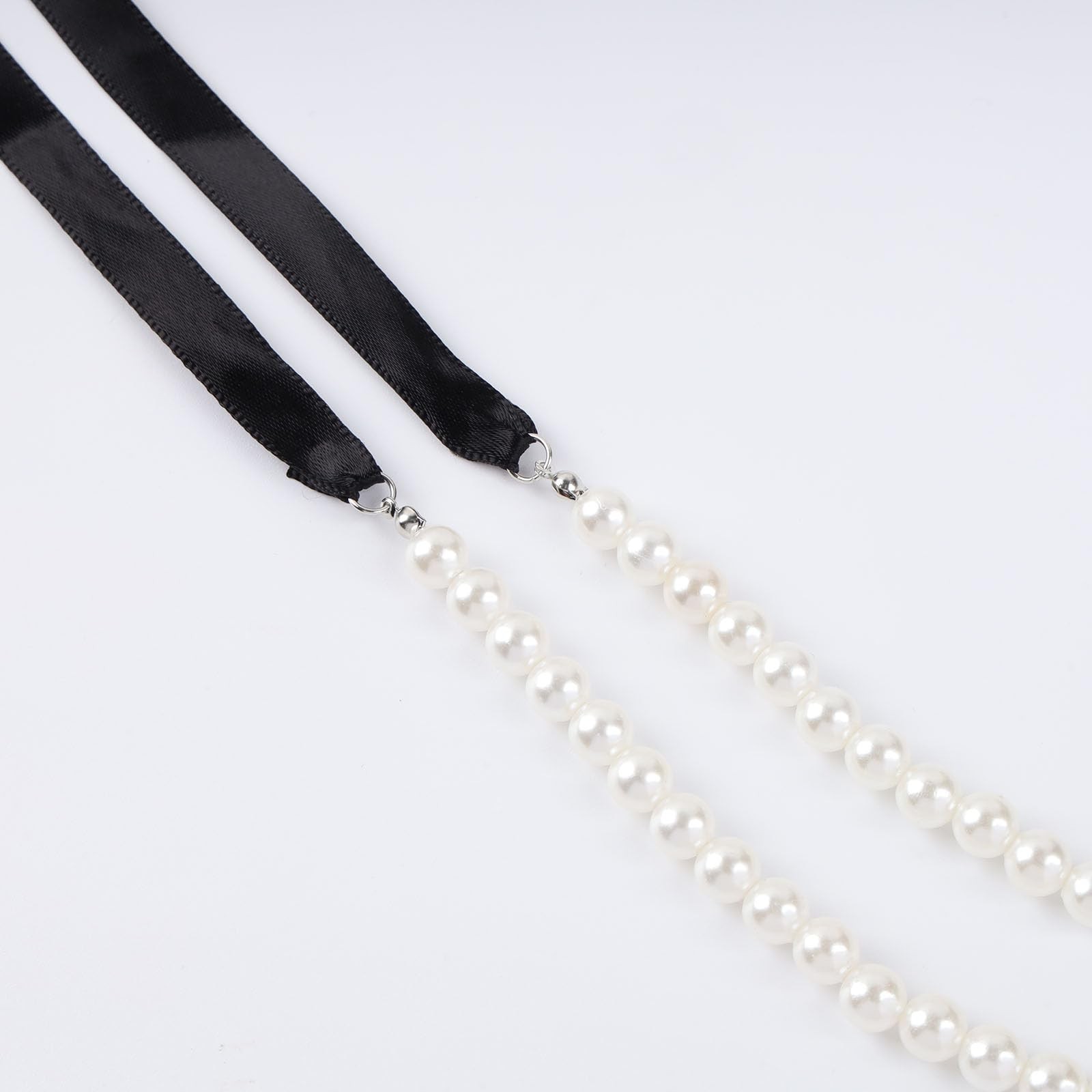 как выглядит Vintage Pearl Black Choker Necklace Long Black Ribbon Bow Necklace Pearl Chain N фото