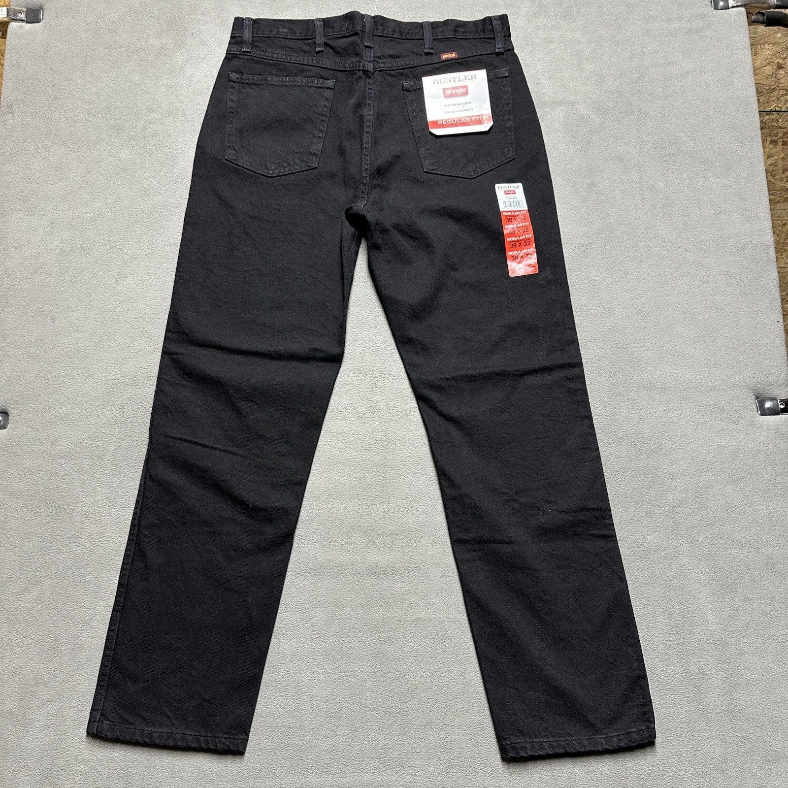 NWT Rustler Jeans Mens 36x32 36x31 Black Denim Regular Straight Leg Wrangler