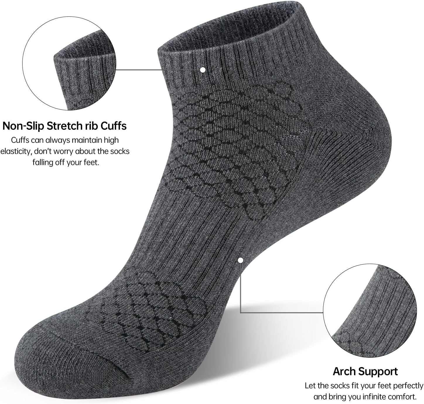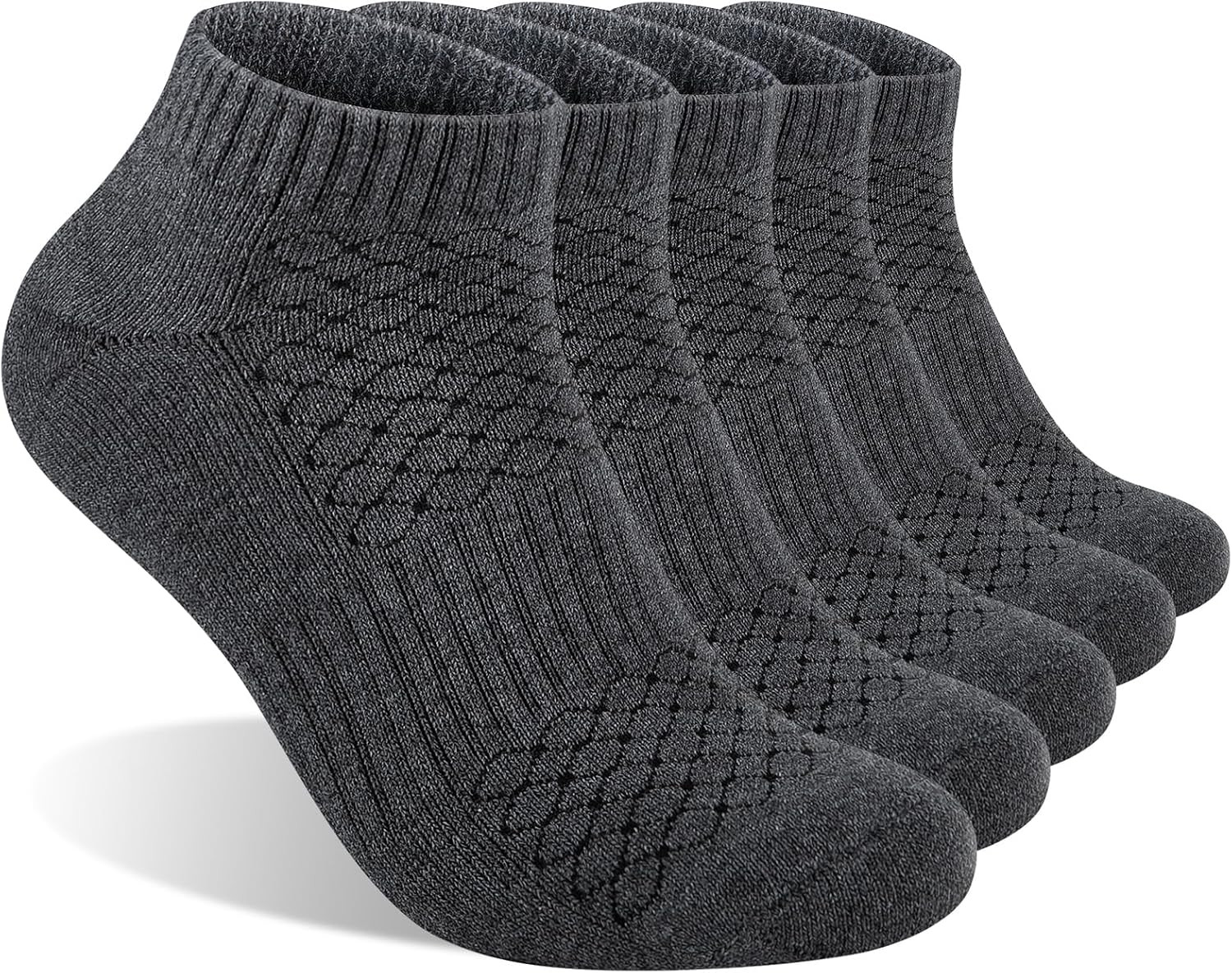 как выглядит Mens 100 Cotton Cushioned Ankle Socks, Running Moisture Wicking Socks 5 Pack фото