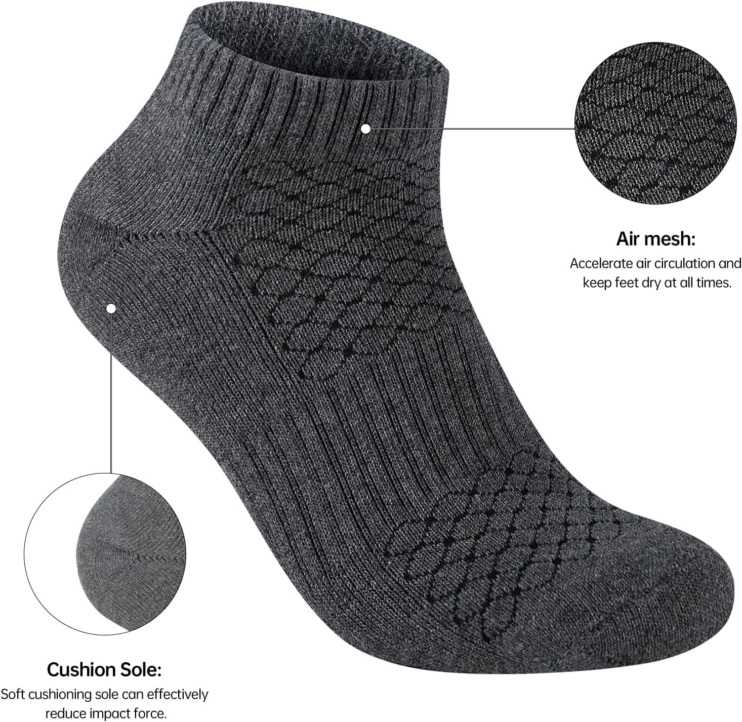 Mens 100 Cotton Cushioned Ankle Socks, Running Moisture Wicking Socks 5 Pack