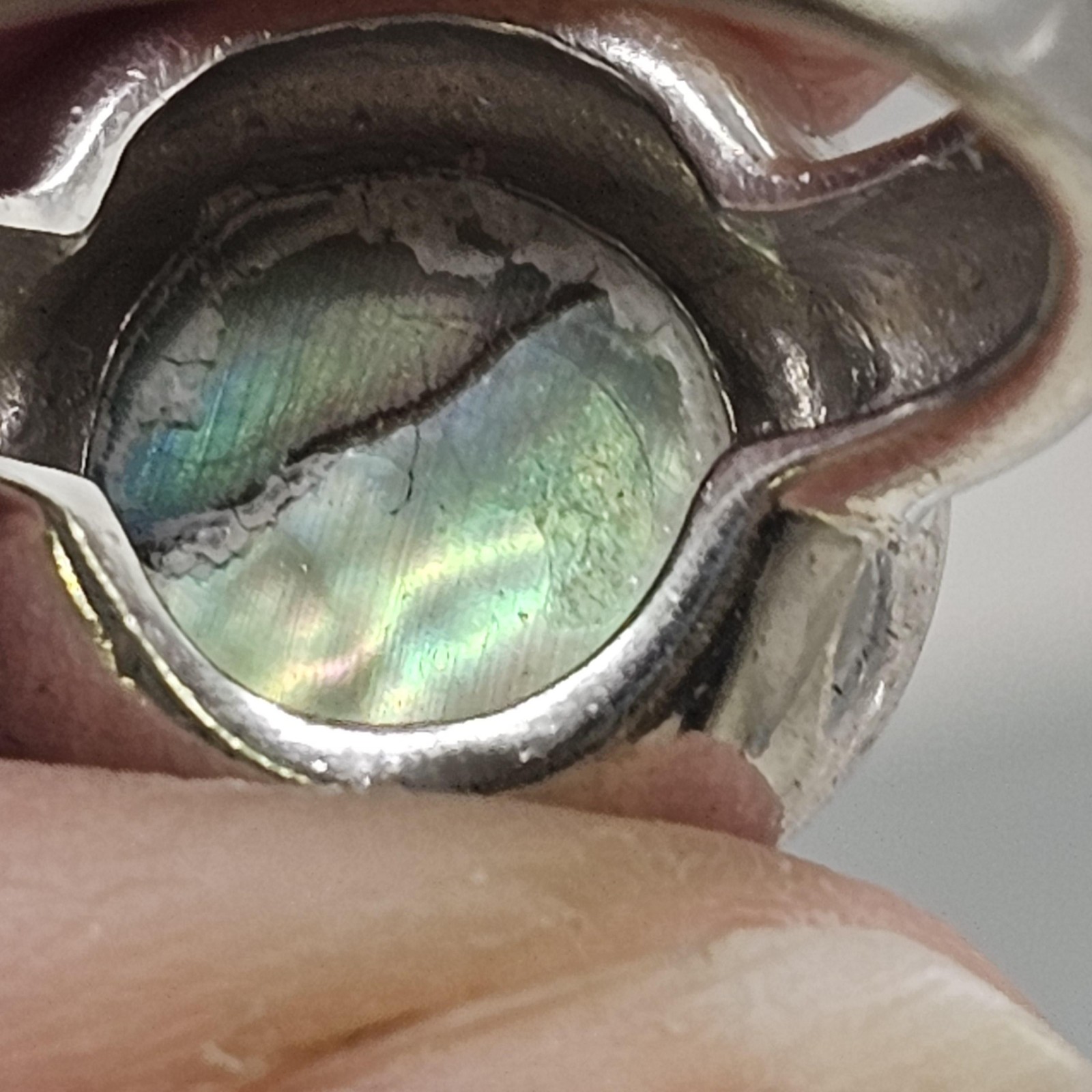 925 Sterling Silver Blue Abalone Shell Round Cabochon Ring Mexico Boho Artisan 5
