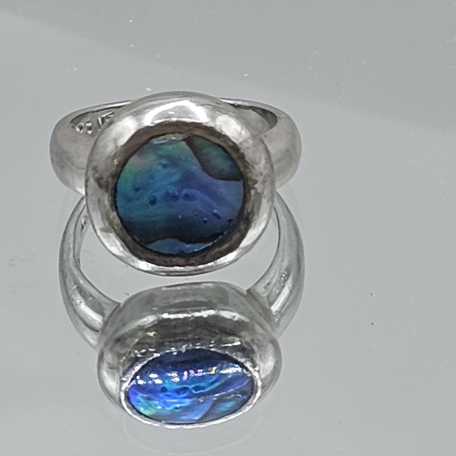 как выглядит 925 Sterling Silver Blue Abalone Shell Round Cabochon Ring Mexico Boho Artisan 5 фото