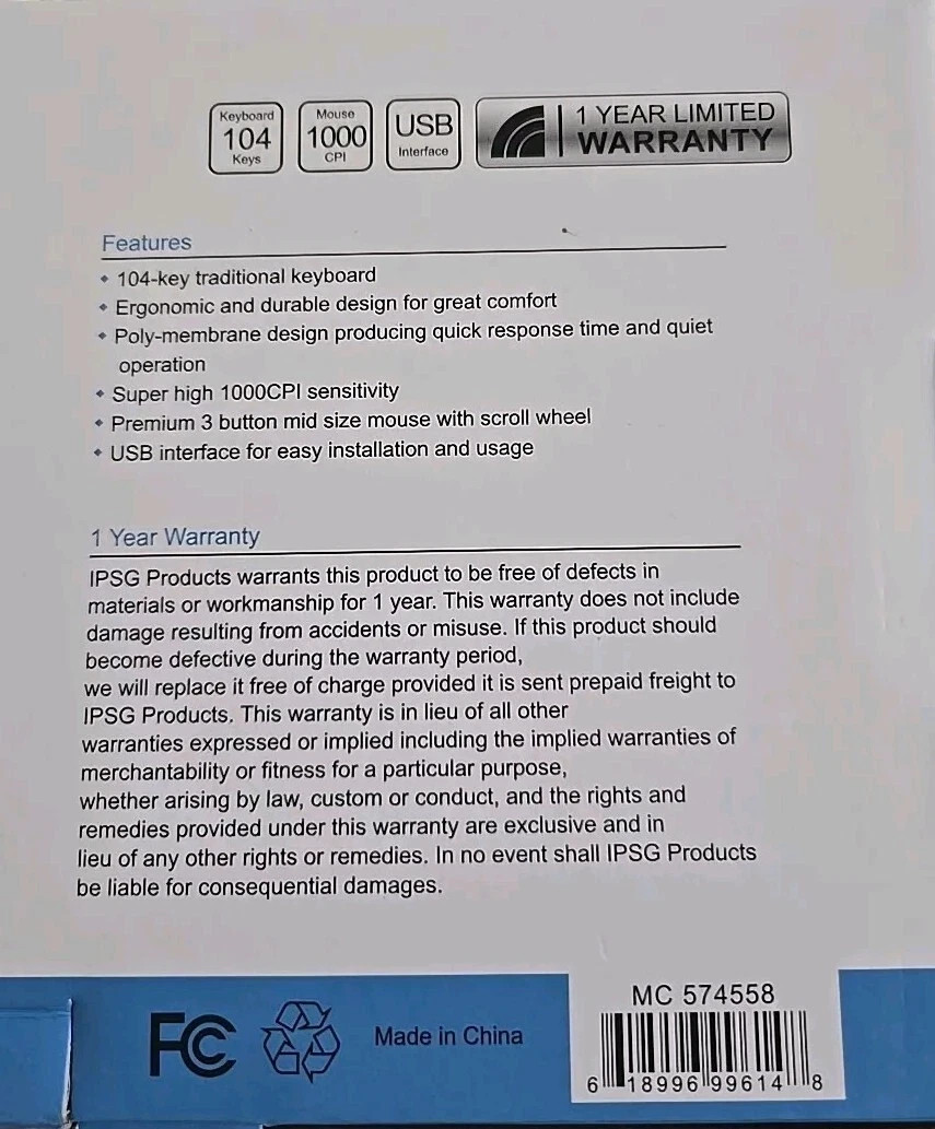 Inland IC210 USB Keyboard Mouse Combo