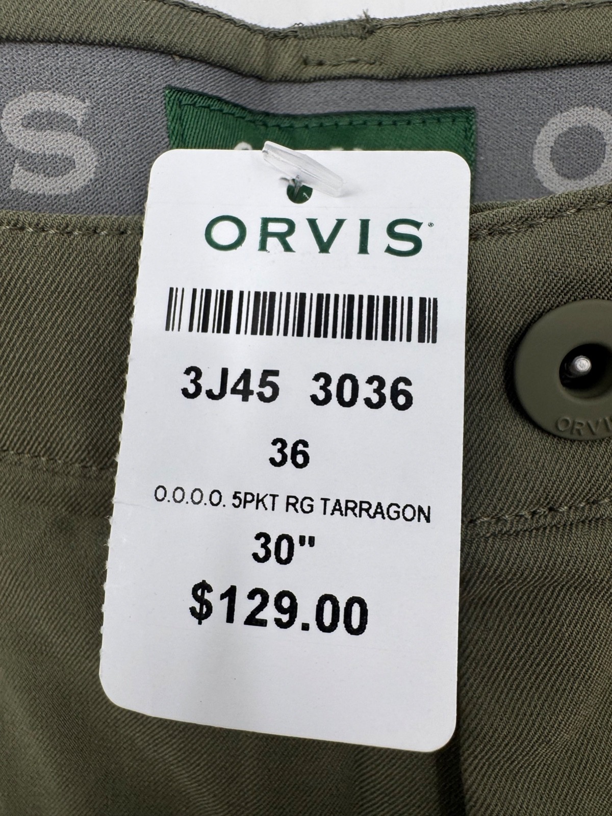 NWT Orvis O.O.O.O TM 5 Pocket Trousers Men's 36 Tarragon Zip Fly Button Summer