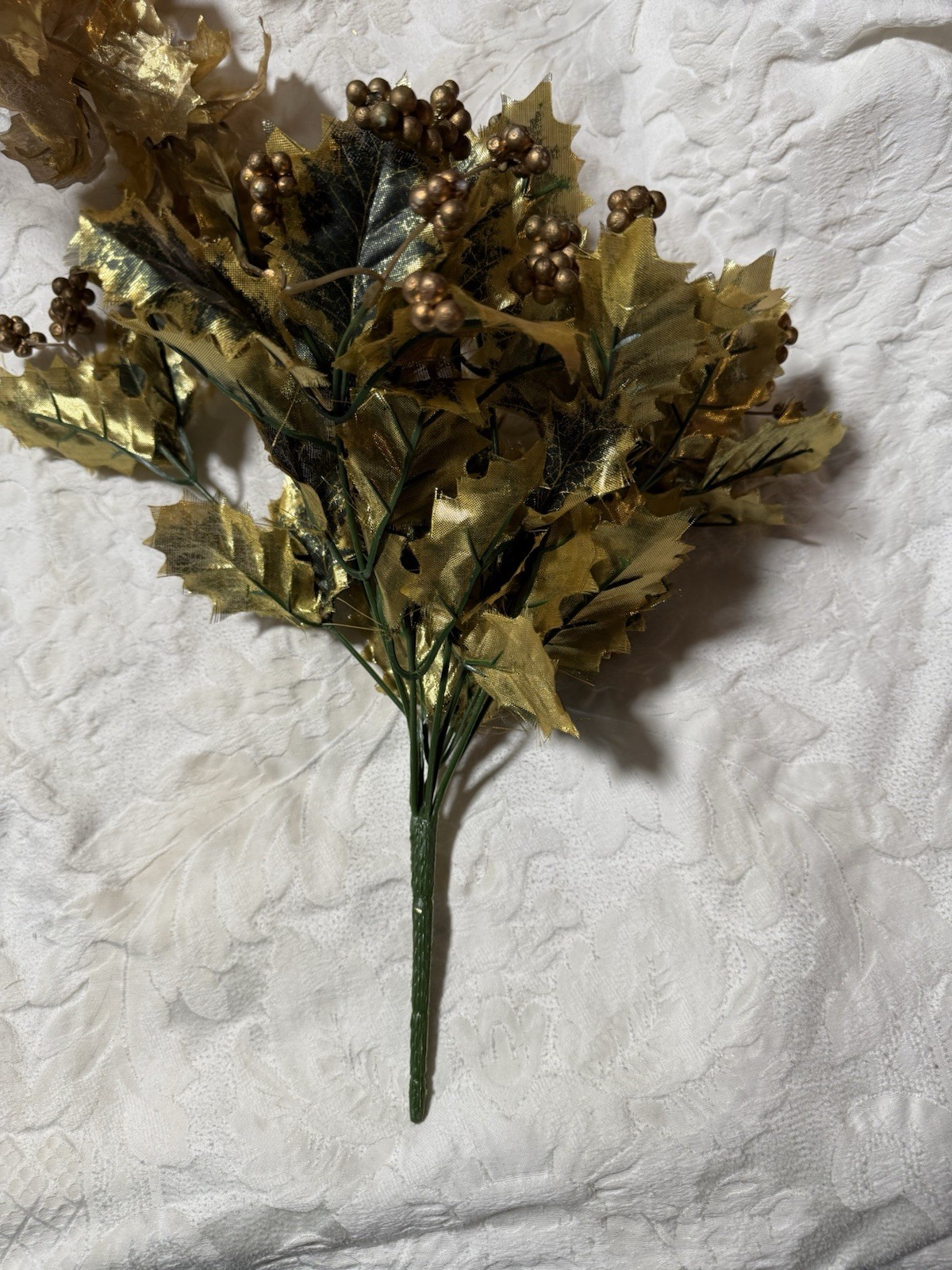 Lot of 4 Gold Holiday Floral Picks Holly Berry Sprays Christmas Decor