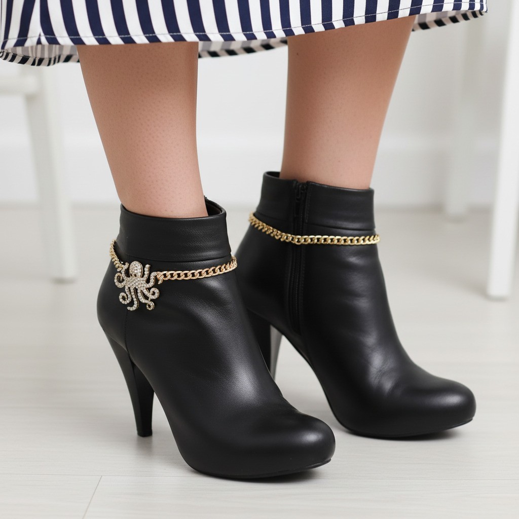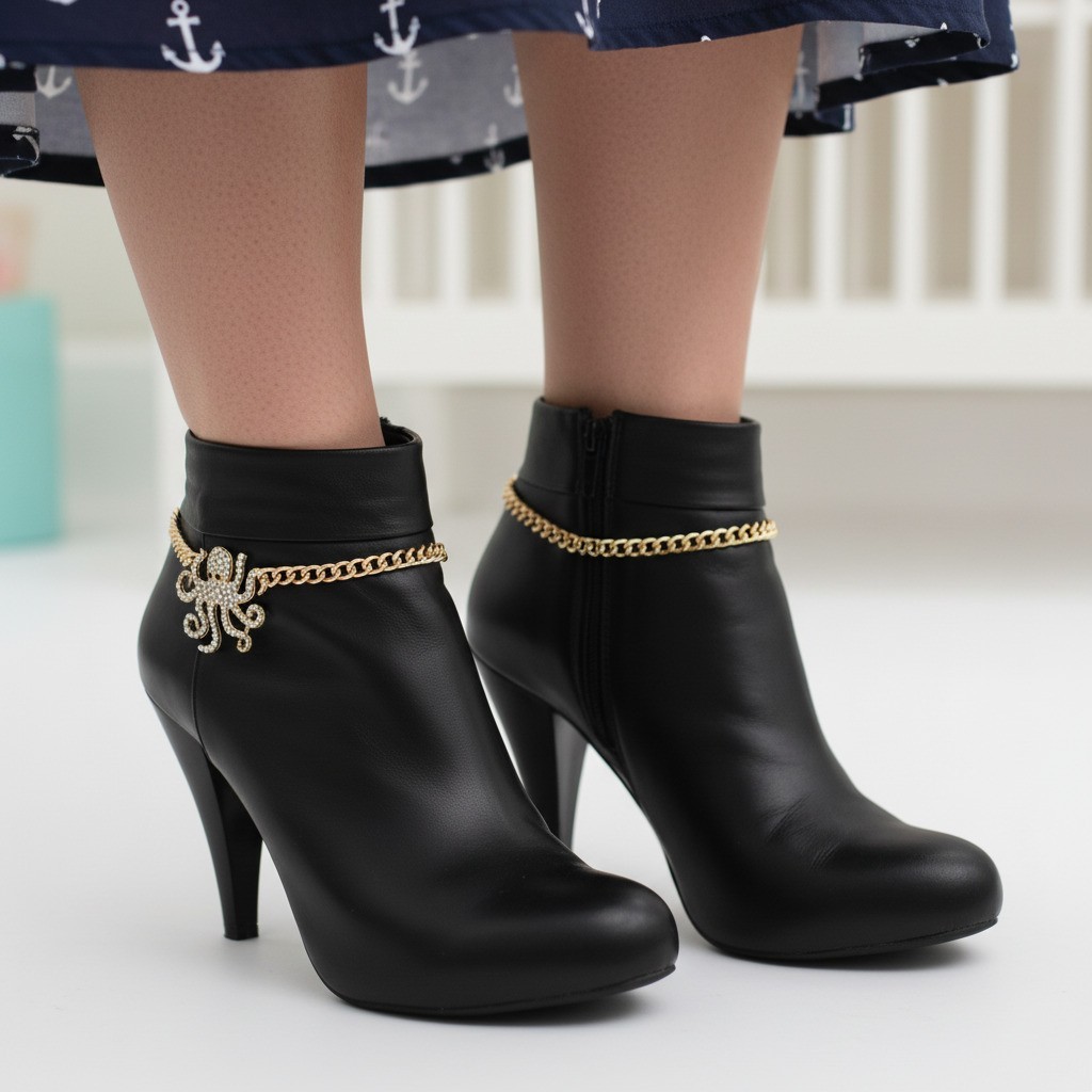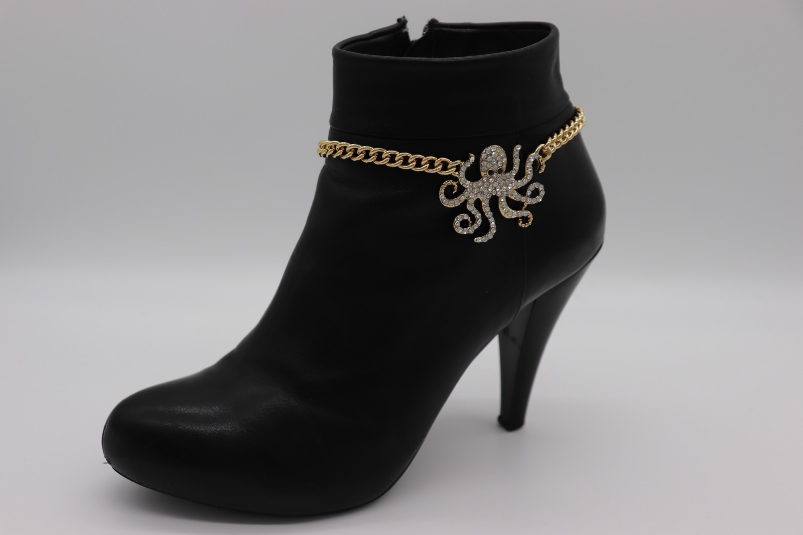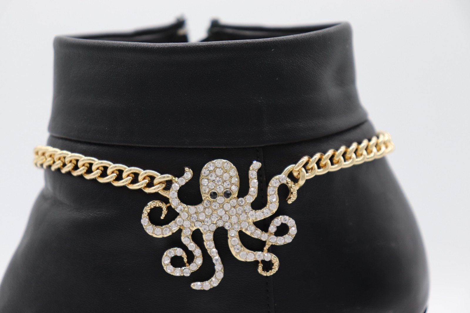 Women 2PCS Gold Metal Boot Chain Bracelet Octopus Charm Shoe Anklet Handmade USA