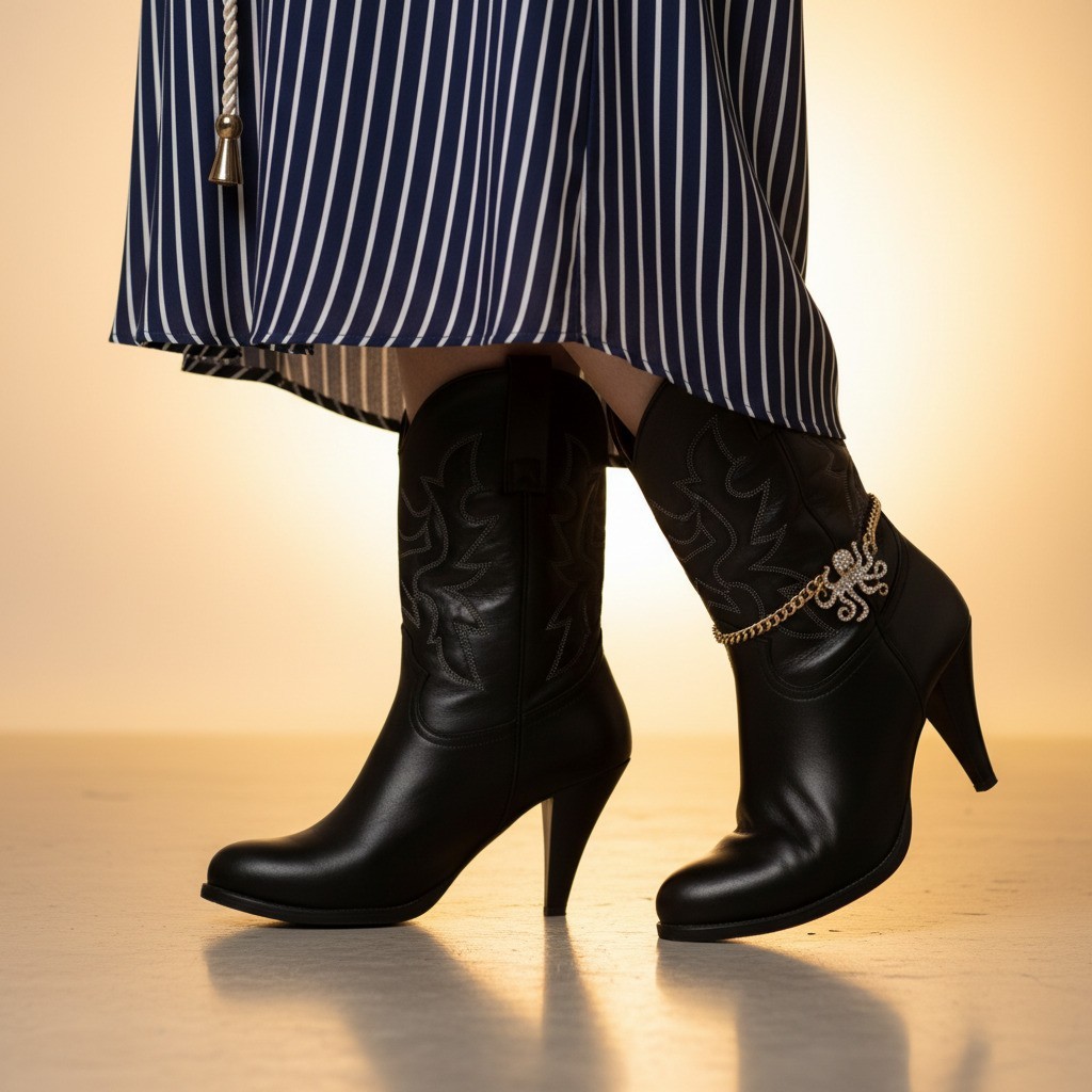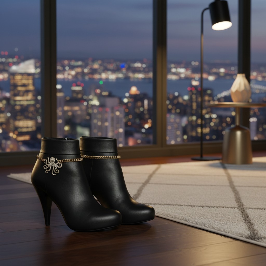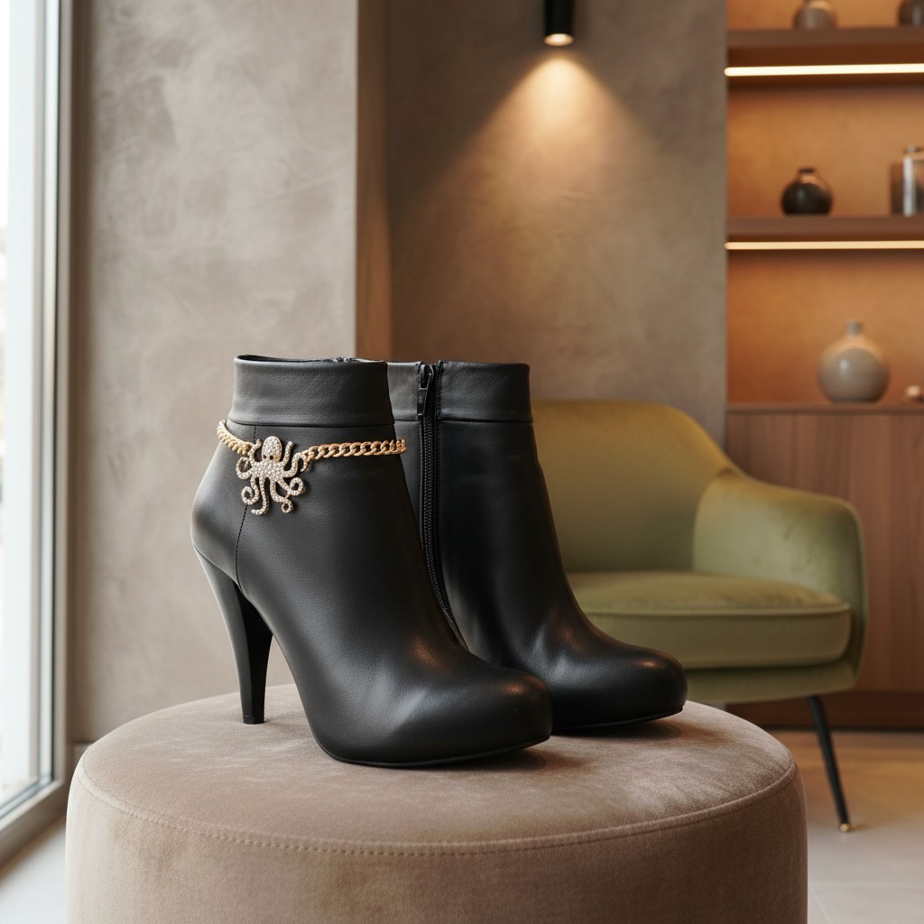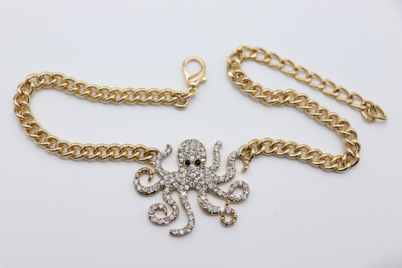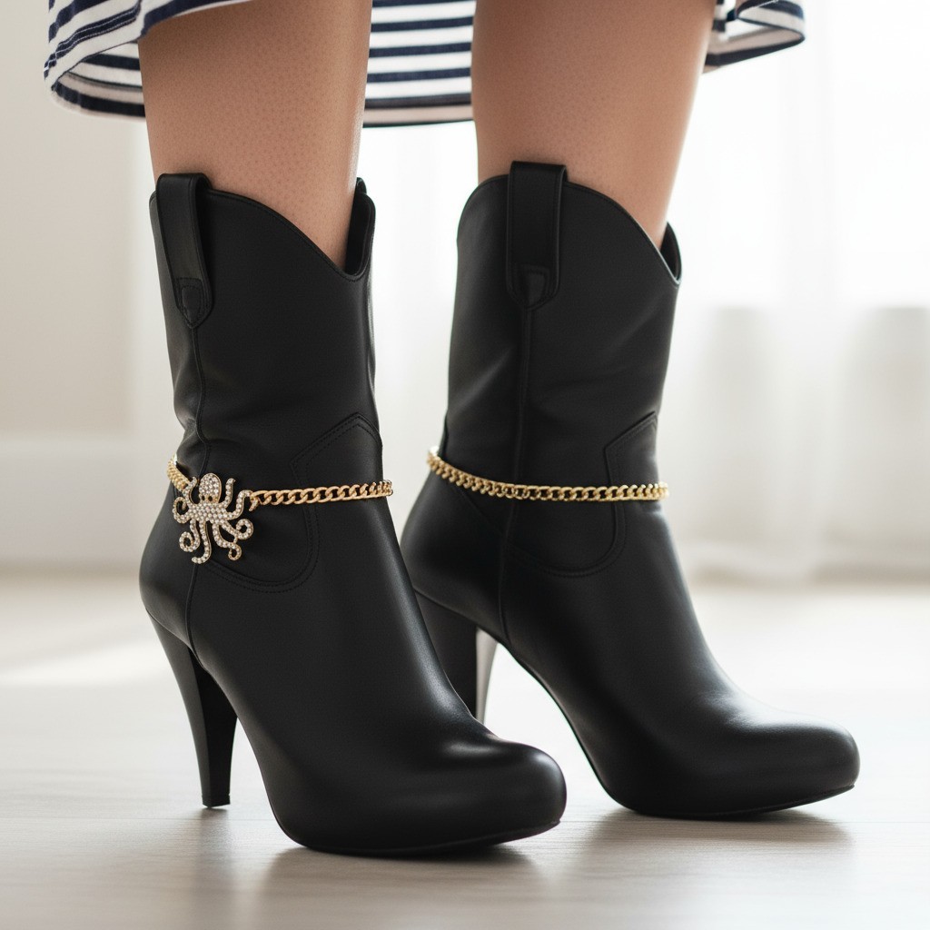 Women 2PCS Gold Metal Boot Chain Bracelet Octopus Charm Shoe Anklet Handmade USA