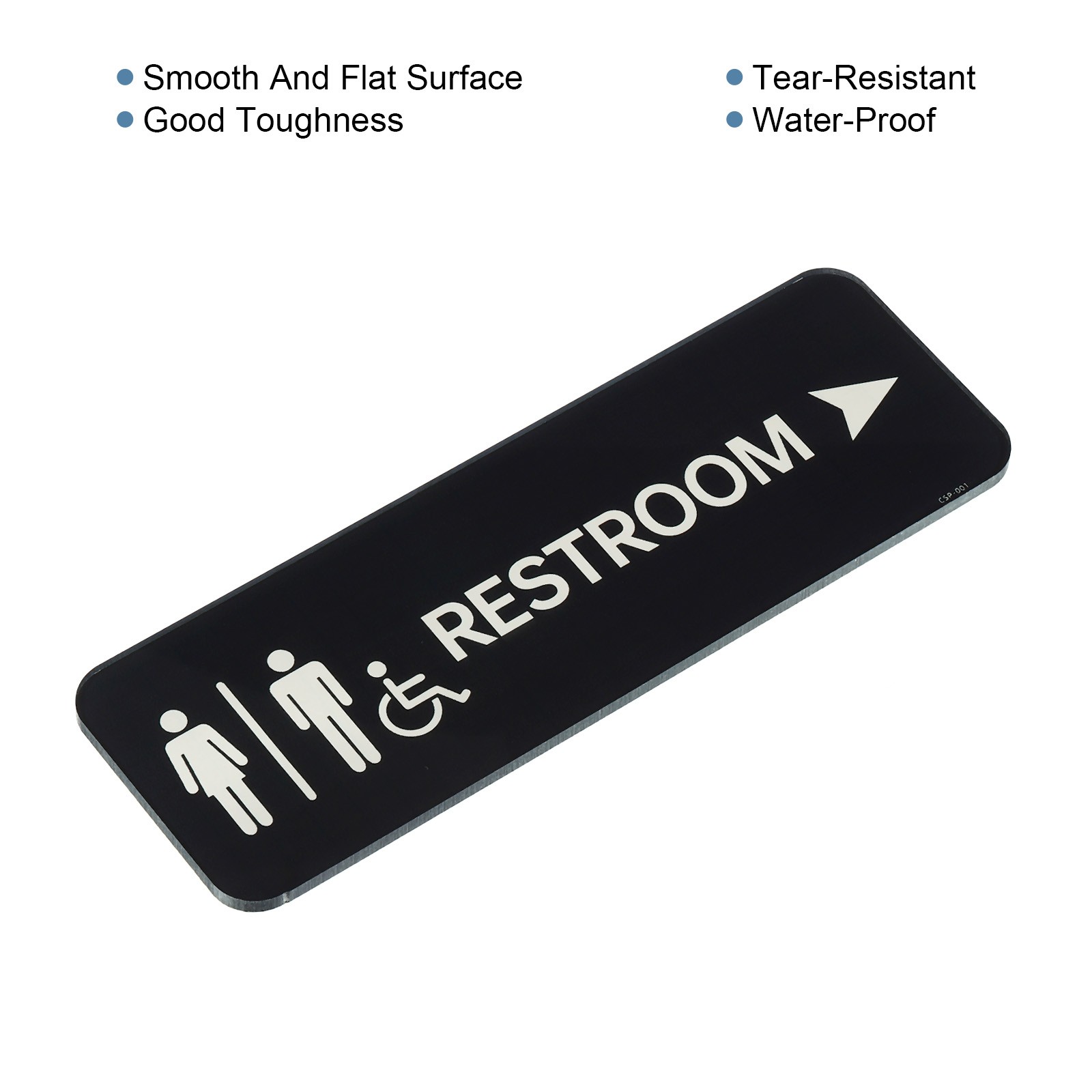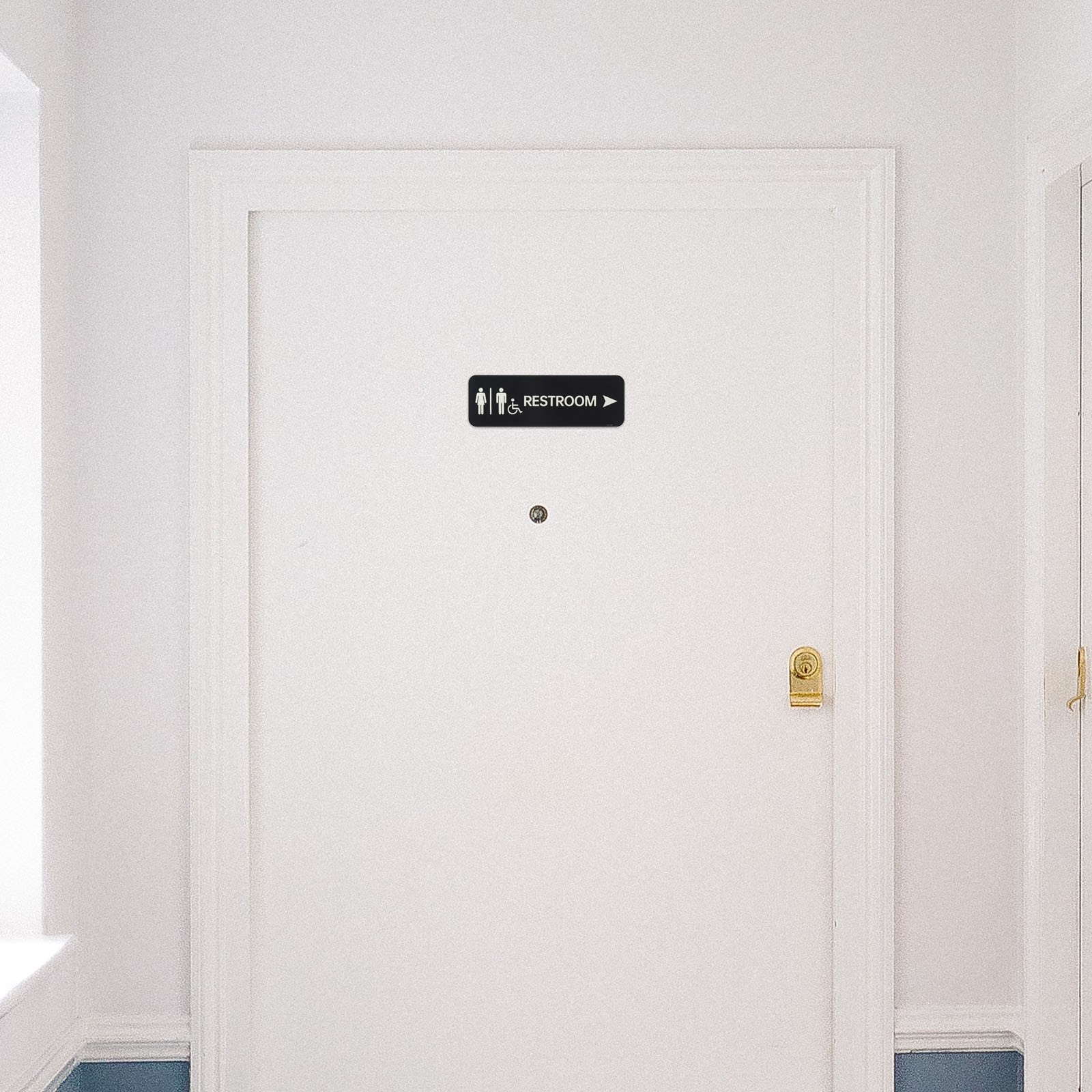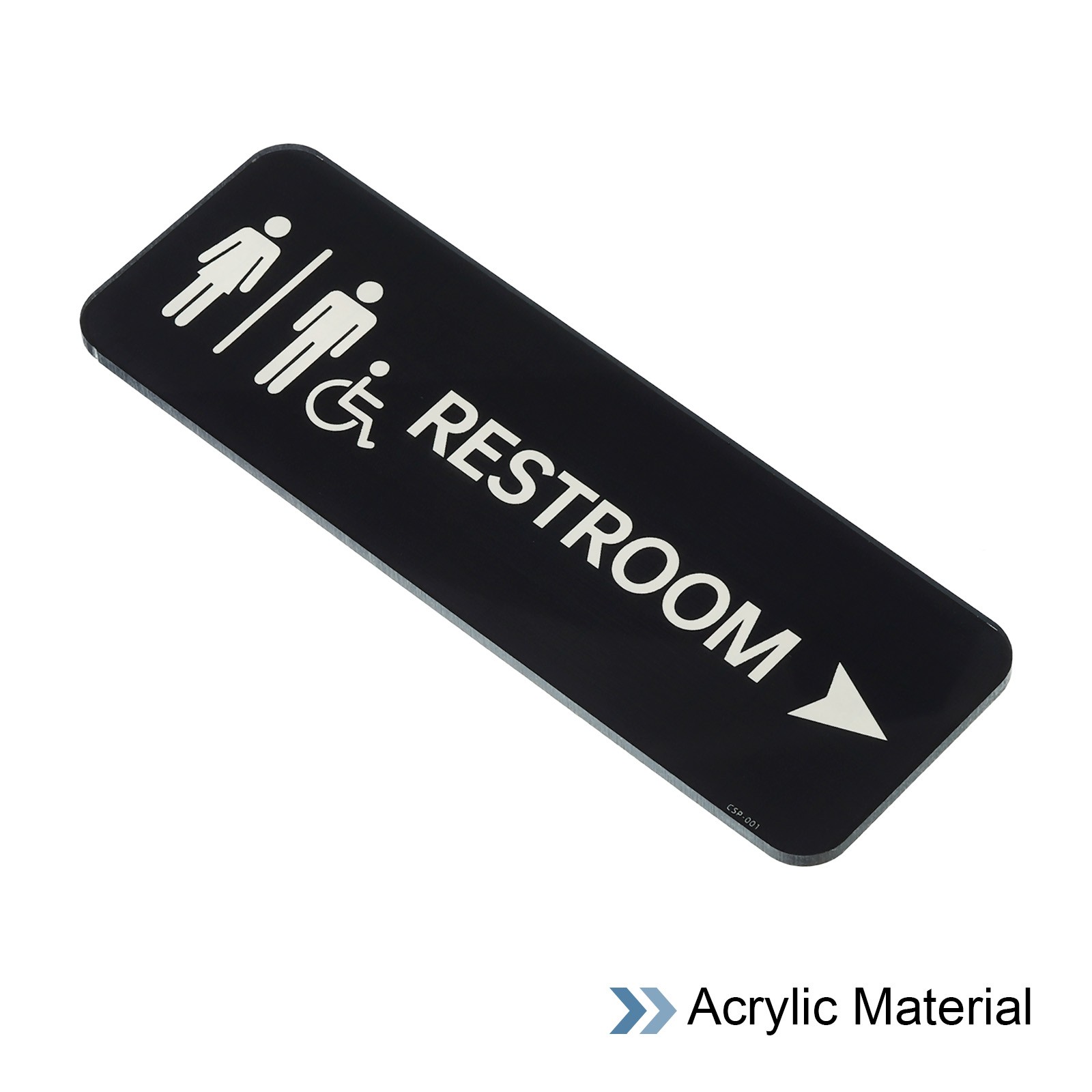 как выглядит Restroom with Right Arrow Sign, Acrylic Interior Door Exterior Sticker, Black фото