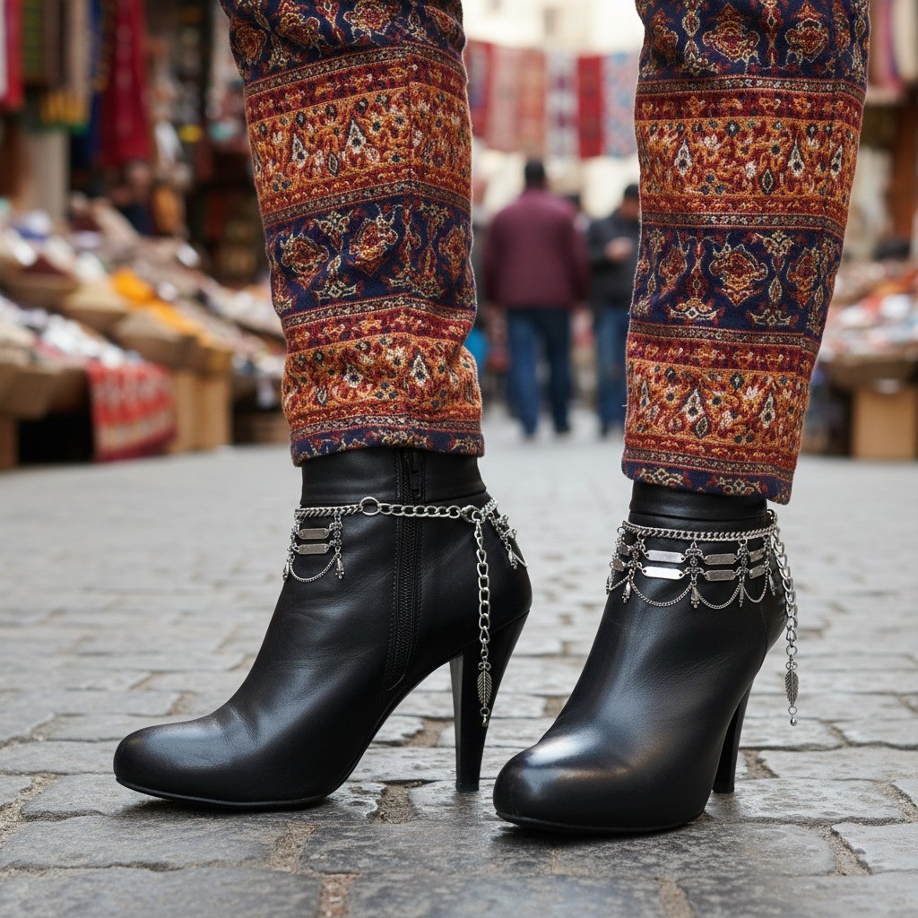 Women 2PCS Silver Metal Boot Chain Bracelet Rustic Flower Charm Shoe Anklet PAIR
