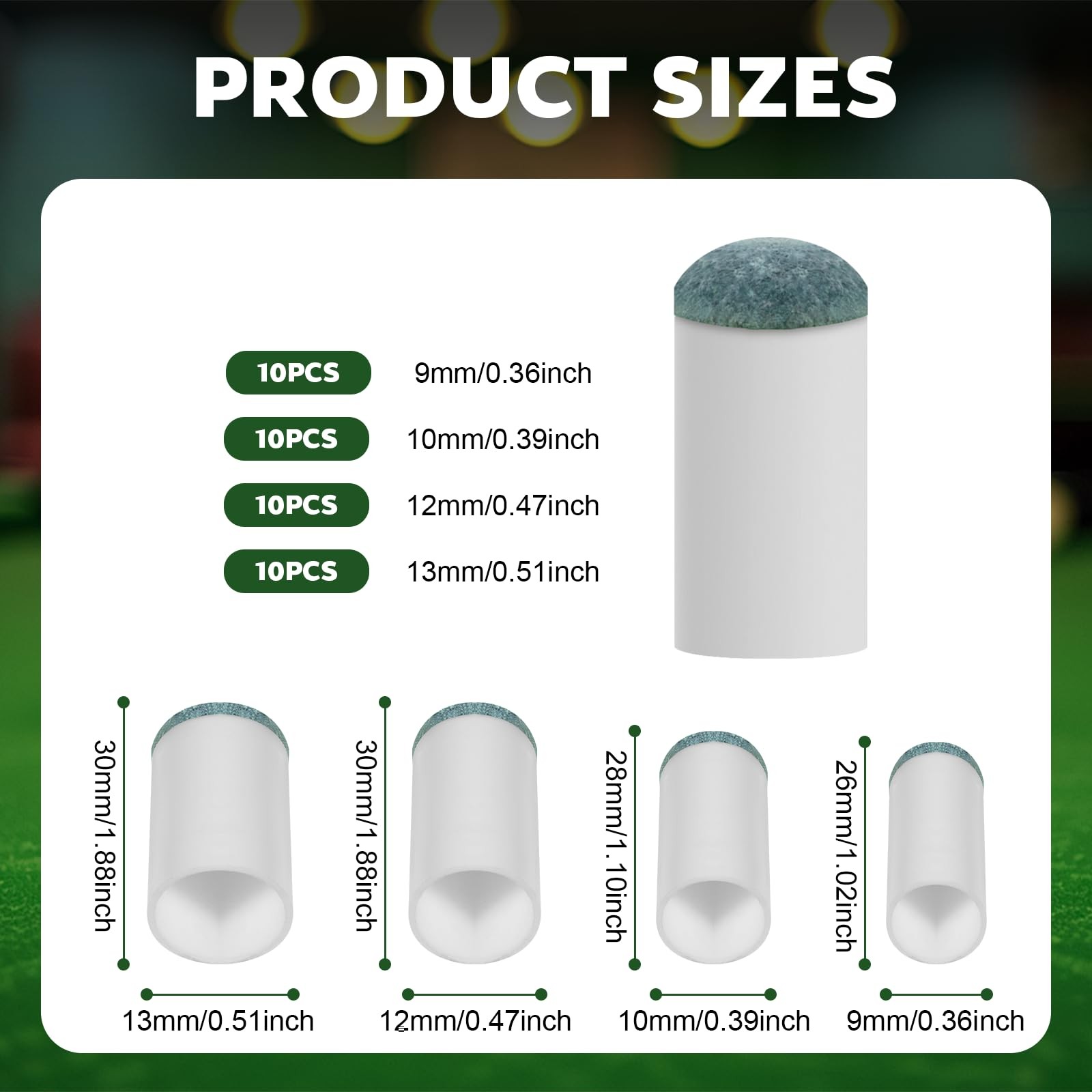 40Pcs Slip on Pool Cue Tips Replacement Billiard Cue Tips 4 Sizes Slip-On Cue Ti