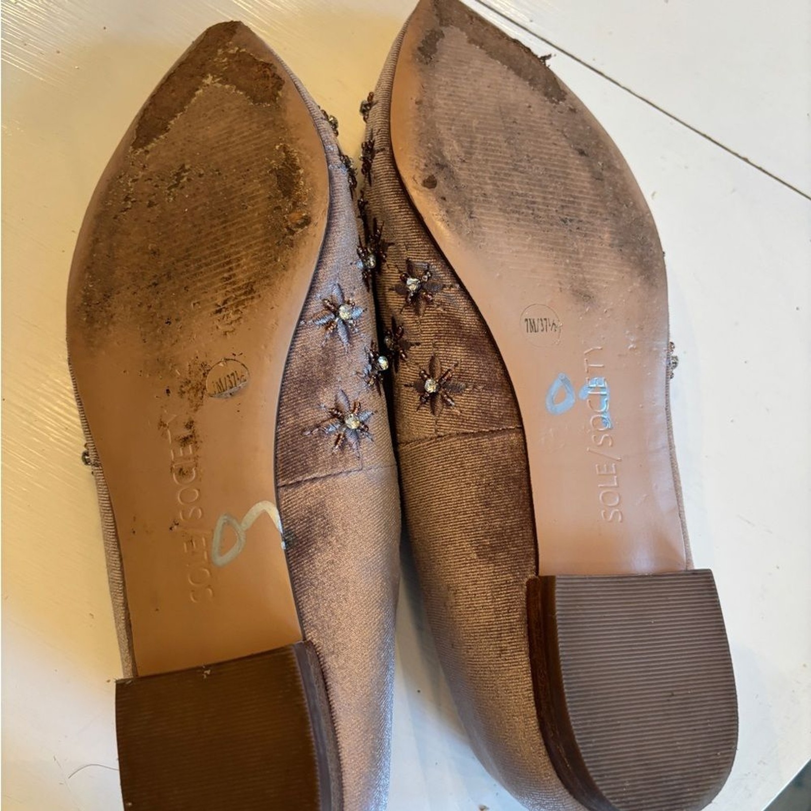 как выглядит Tory Burch Elora embellished mules size 7 and free pair of Sole Society loafers фото