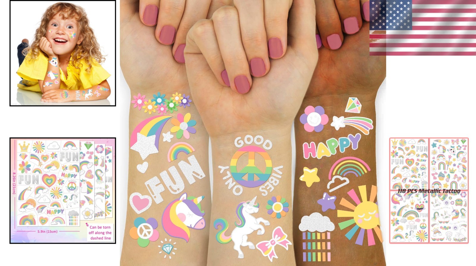 118 Magical Unicorn Rainbow Temporary Tattoos - Perfect Kids Birthday Gifts