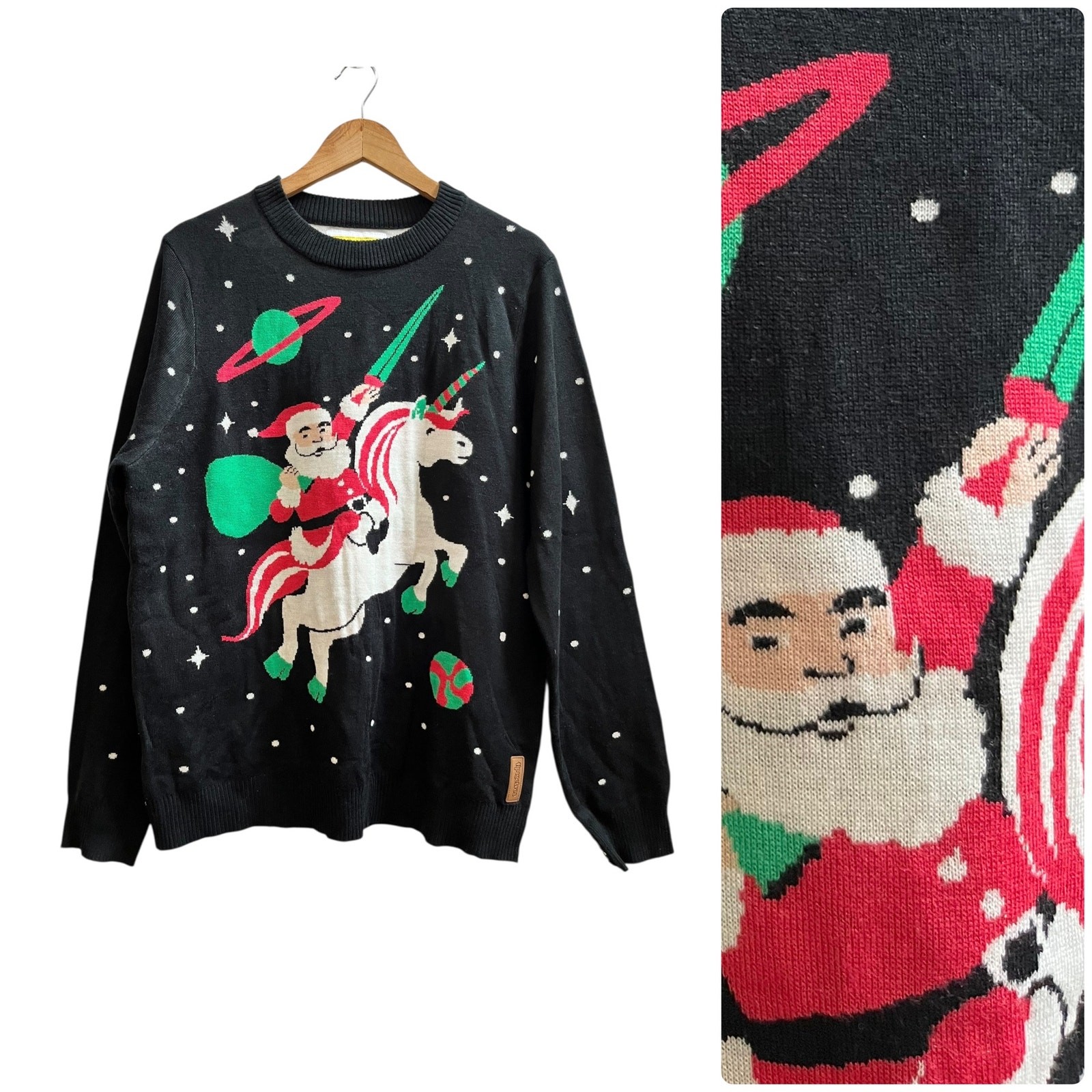 Tipsy Elves Men s Santa Unicorn Ugly Christmas Crew Neck Sweater Size Large