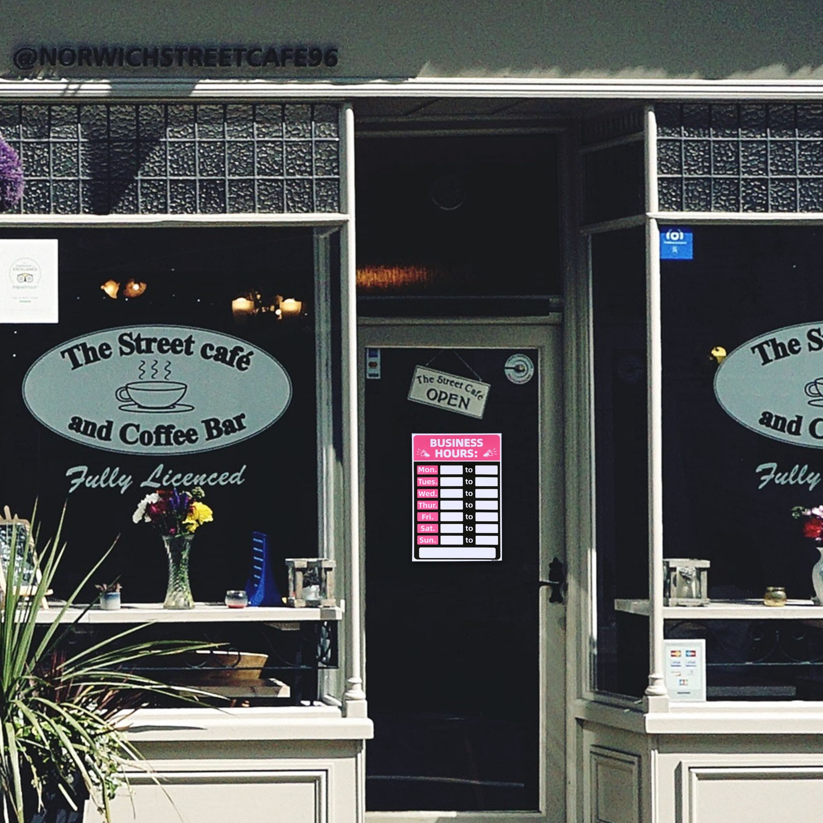 Business Hour Sign, 2pcs PVC Operation Hour Sticker Door Decor, Pink
