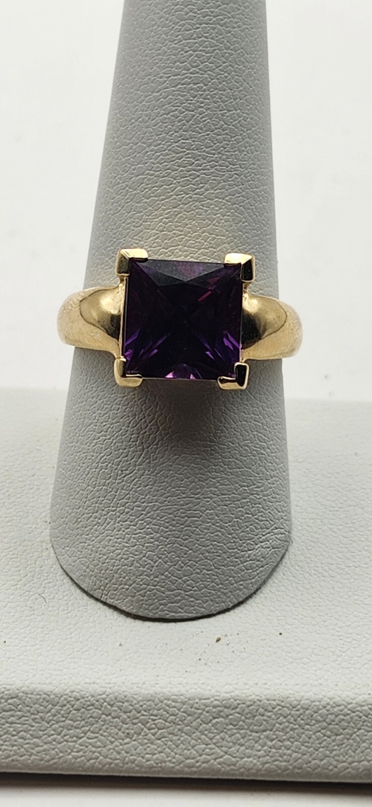 как выглядит Amethyst Colored Stone Sterling Silver Gold Plated Ring 5.6 Grams. фото