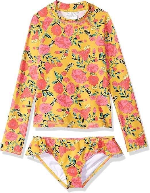 Billabong Girls' Sun Dream Long Sleeve Two Piece Swim Set, Golden Glow SZ 12