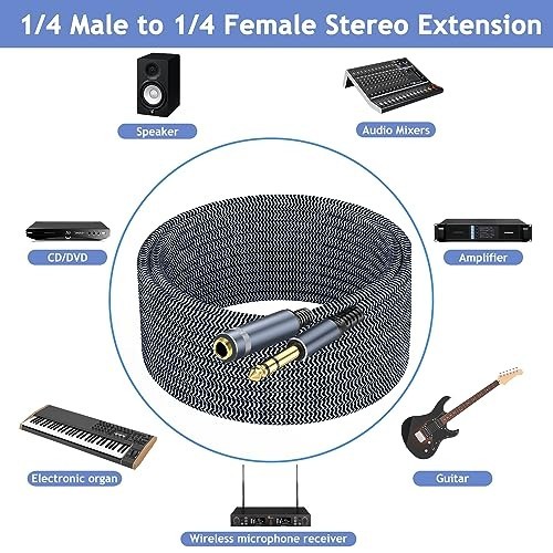 15ft 1/4 Male to Female Stereo Headphone Extension Cable - Guitar Audio Cable