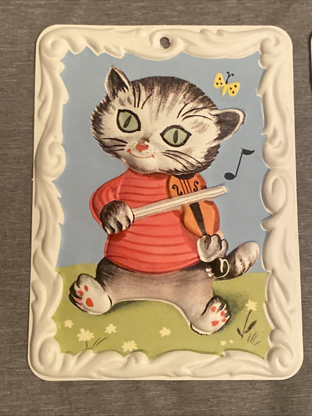 3 Adorable Vintage HEY DIDDLE DIDDLE 3D Nursery Rhyme Wall Decor Plastic Plaque