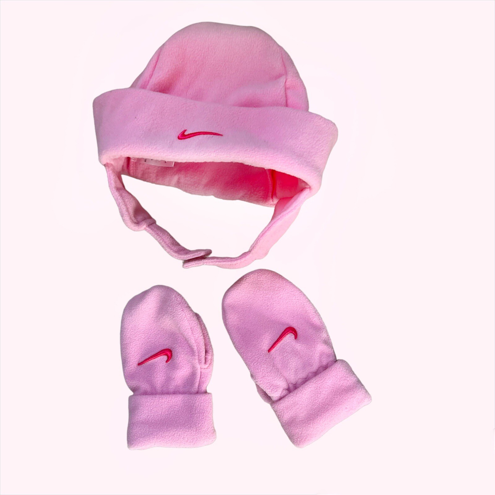 Nike Toddler Girl Swoosh Trapper Hat Mittens Set Fleece One Size