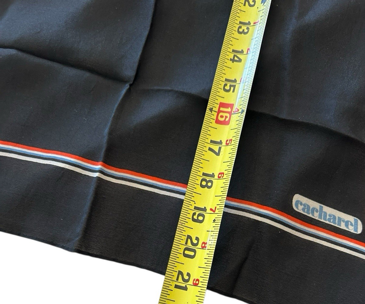 как выглядит Vtg Classic Cacharel Shear Black w Red White Blue Perimeter Stripe Neck Scarf фото