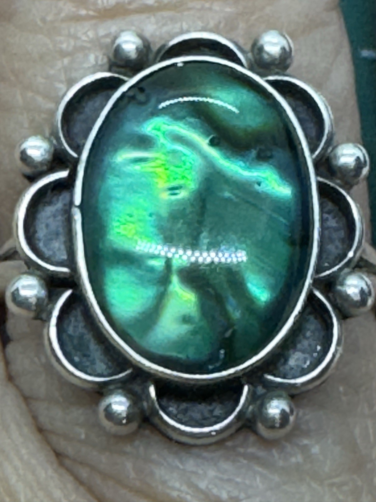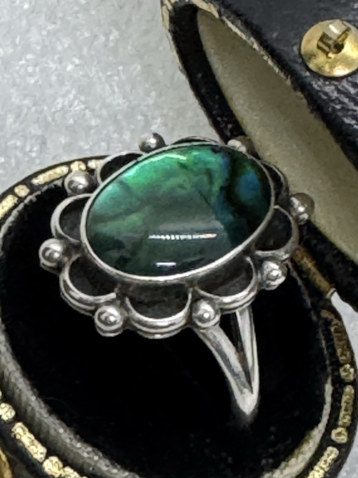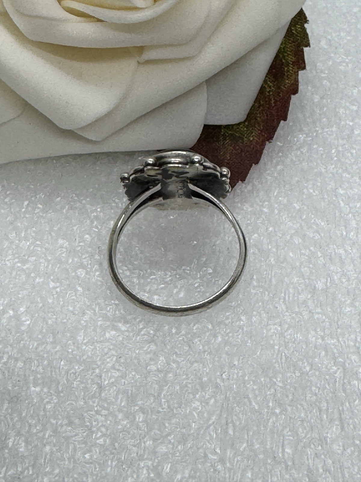 как выглядит Southwestern Sterling Silver Green Gemstone Ring Size 7 Marked STERLING фото