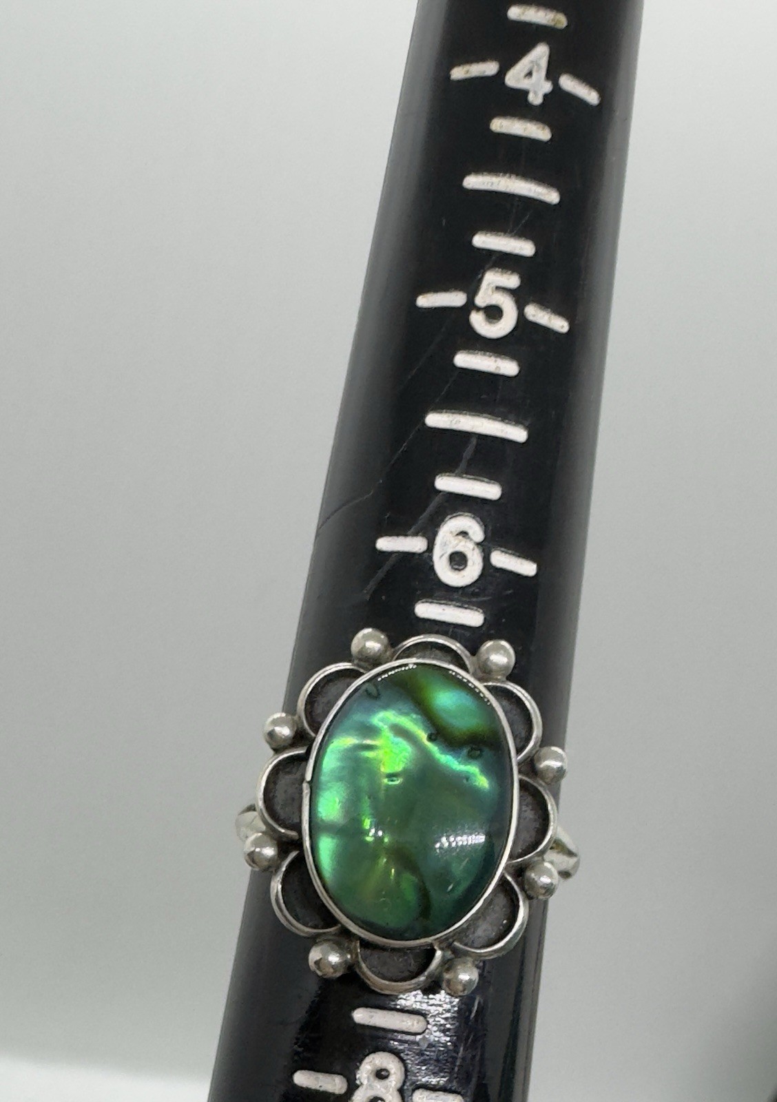 Southwestern Sterling Silver Green Gemstone Ring Size 7 Marked STERLING