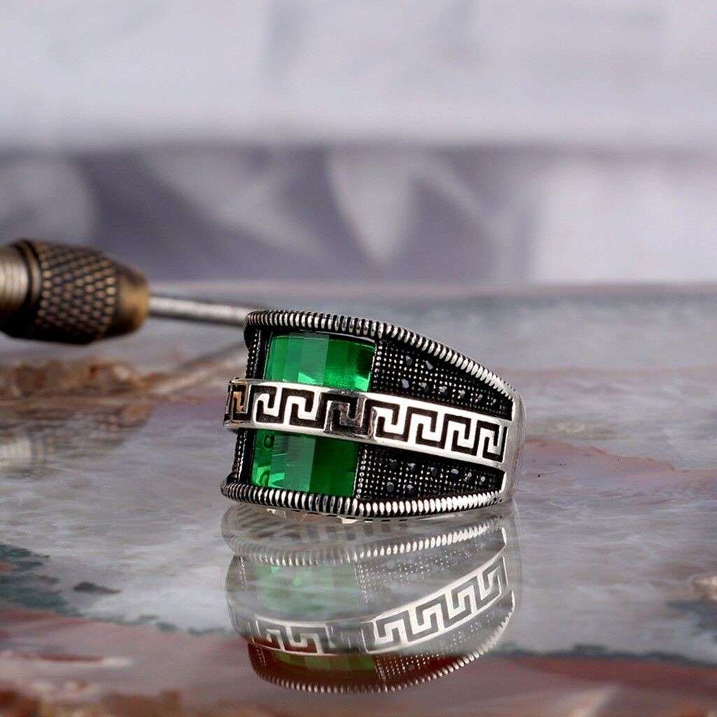 как выглядит Green Zircon Stone 925 Sterling Silver Men