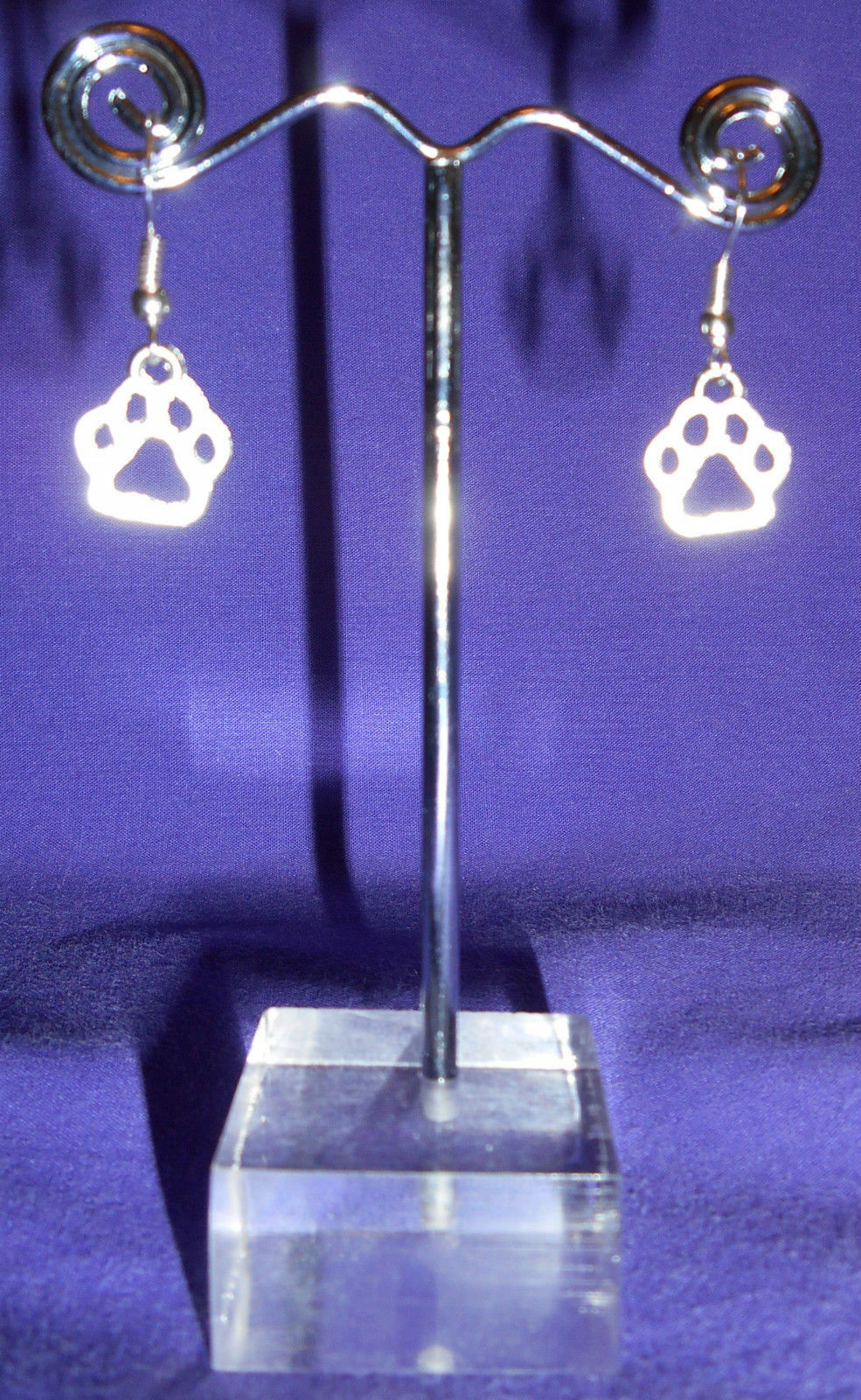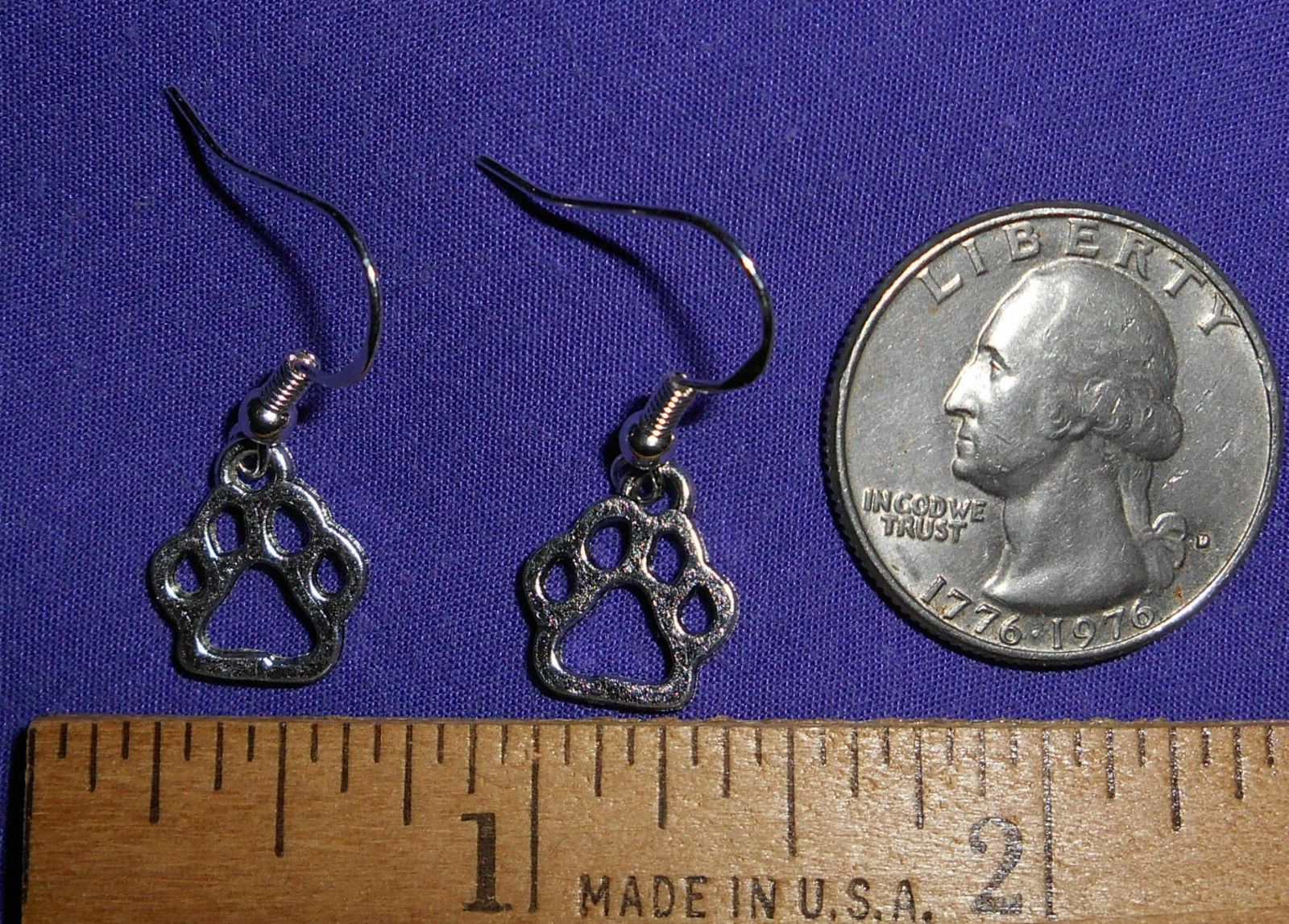 DOG PAW PRINT EARRINGS, Small Open - Pewter with Sterling Silver Ear Wires CAT