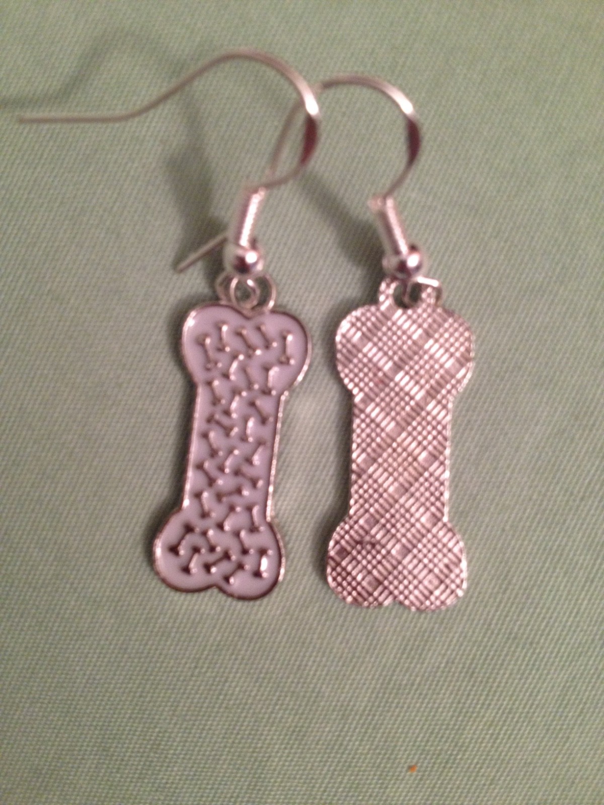 WHITE BONES ON BONES EARRINGS - Enamel with Sterling Silver Ear Wires - DOG PET