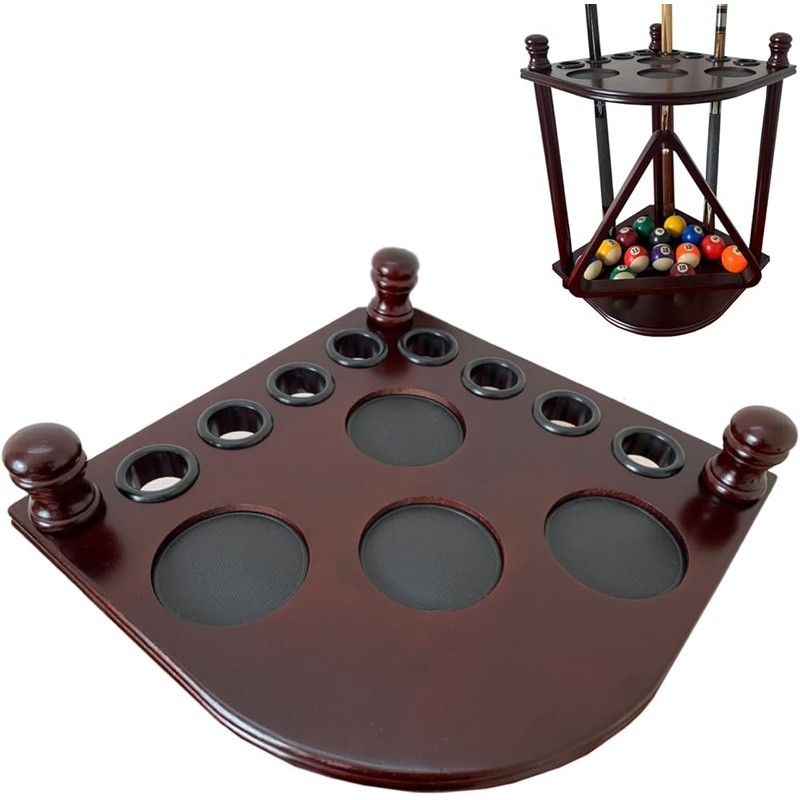 Wooden Billiard Cue Rack Corner Holder Pool Ball Storage Organizer Easy Install