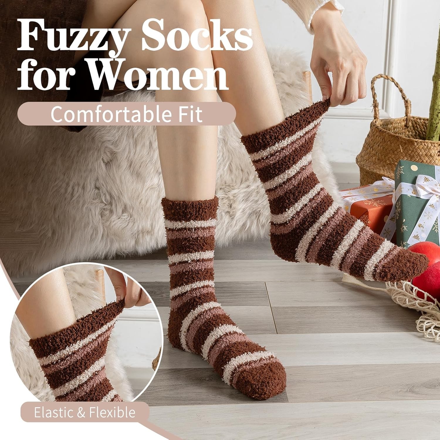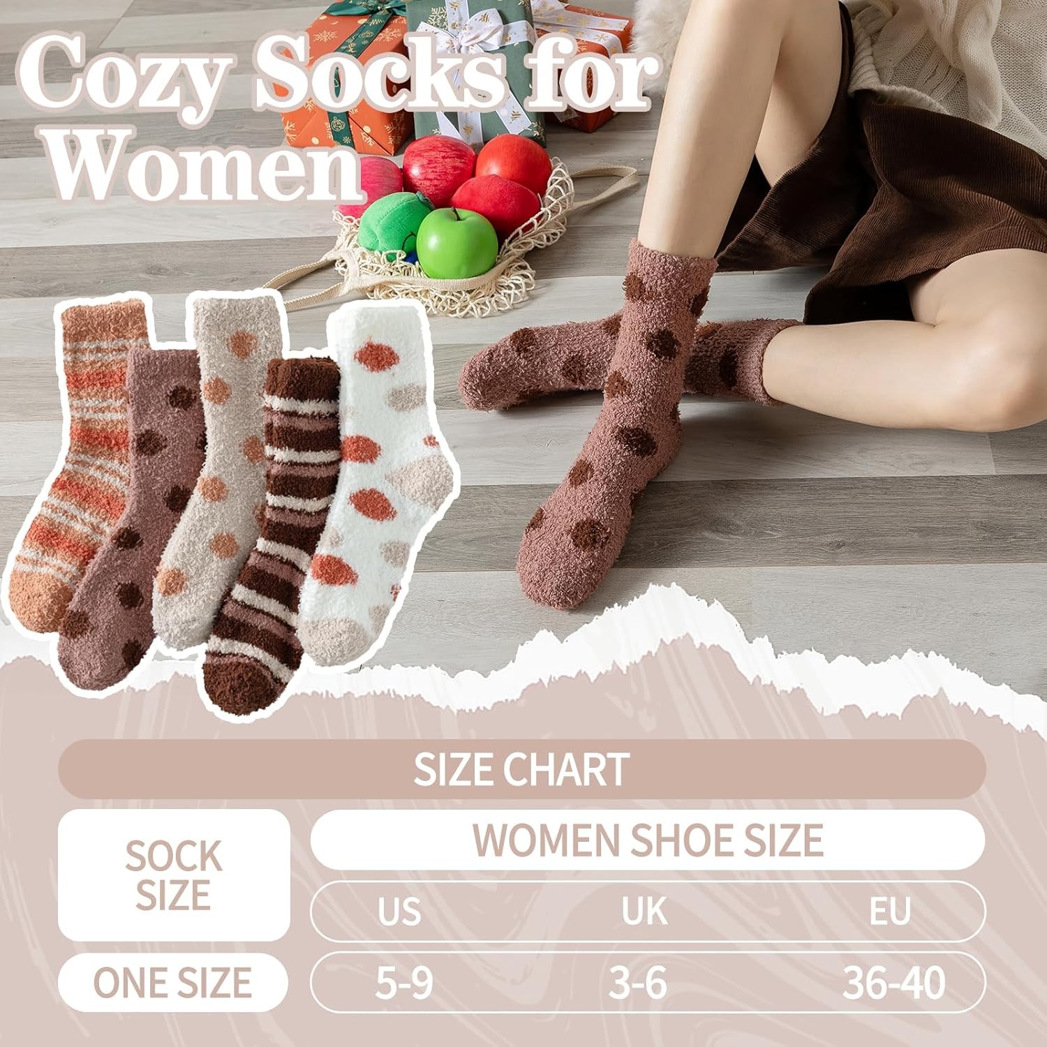 fauson Fuzzy Socks for Women - 5 Pairs Warm Cozy Socks For Women Mom, Slipper So