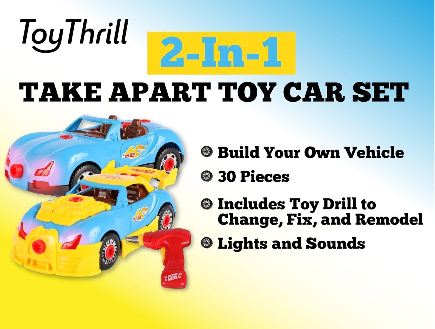 ToyThrill Build Your Own Car with Electric Toy Drill Lights and Sounds 30 pcs
