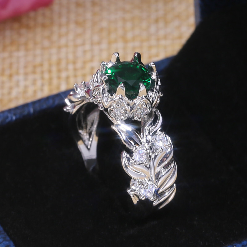 2 CT Simulated Emerald Leafy Ring Silver Plated Designer Ring For Valentine Gift