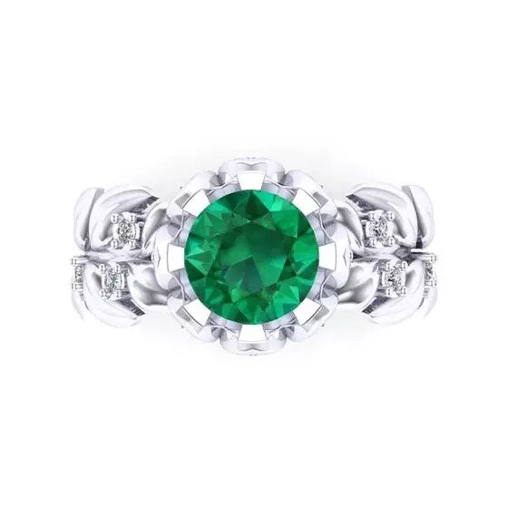 как выглядит 2 CT Simulated Emerald Leafy Ring Silver Plated Designer Ring For Valentine Gift фото
