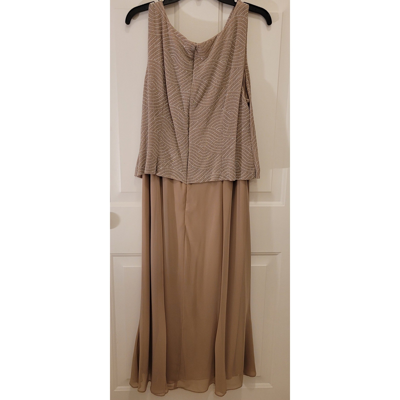 как выглядит Alex Evenings Beaded Embellished Duster Dress 2 Piece Set Mother Bride Taupe M фото
