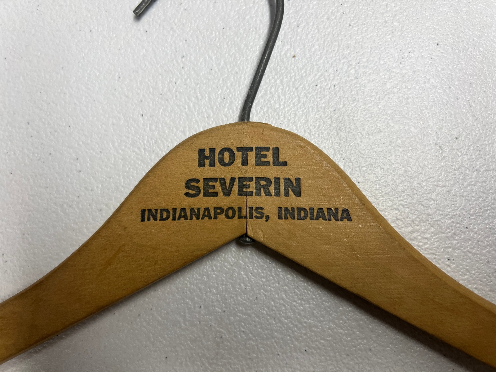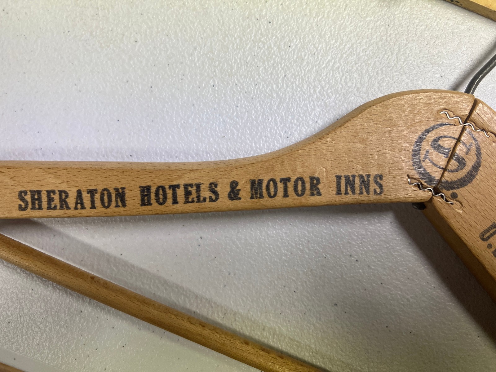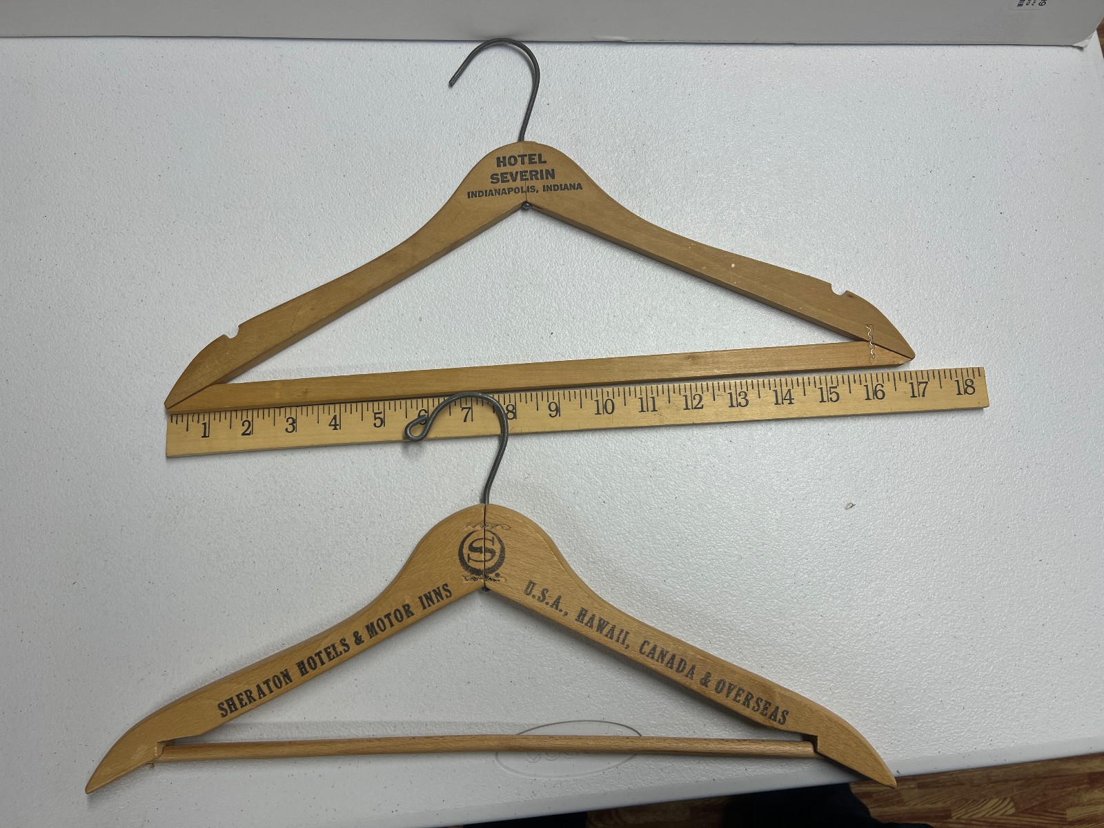 Lot of 2 Vintage Wooden Clothes Hangers, Sheraton Hotels USA Hotel Severin, IN