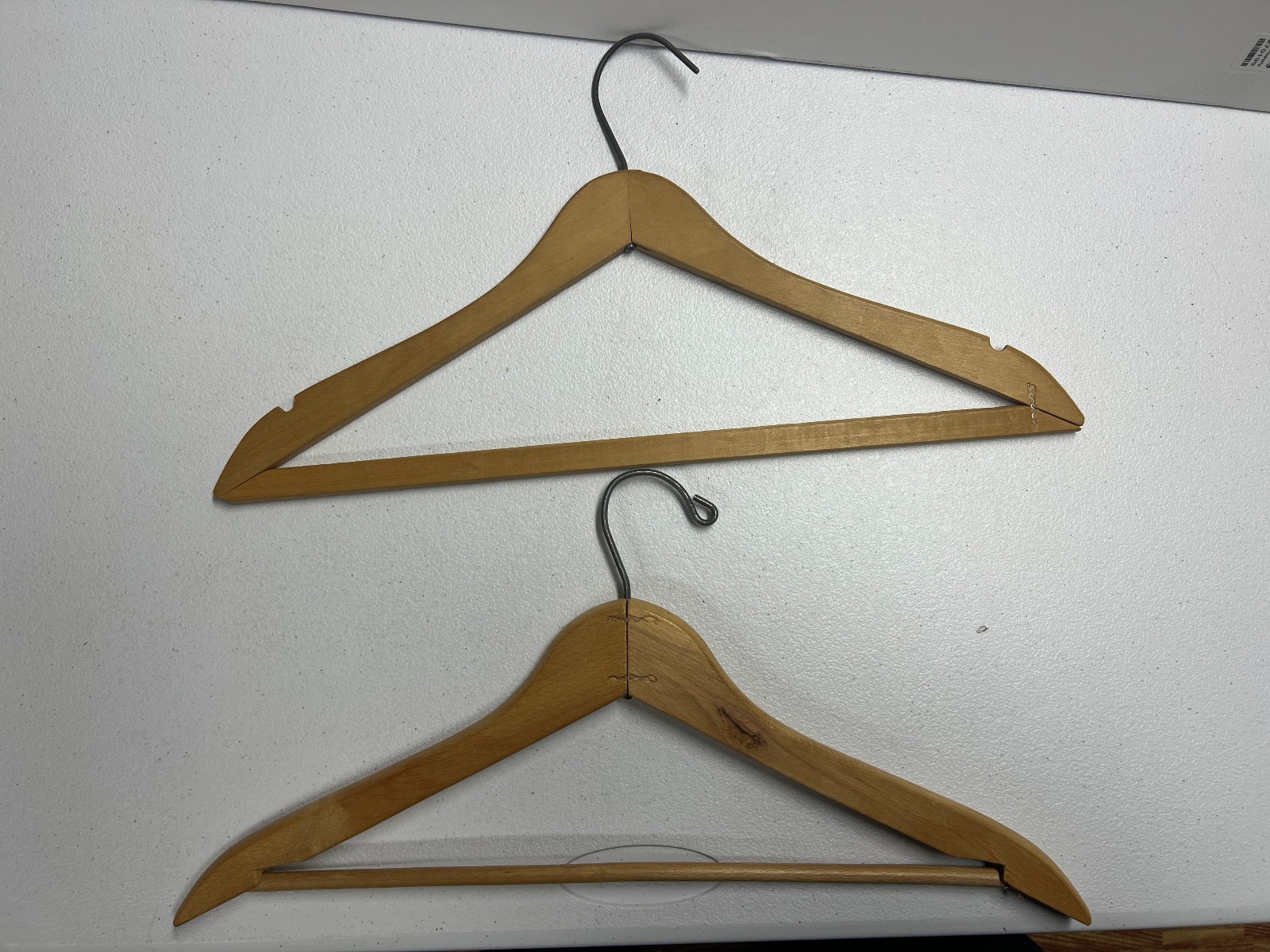 как выглядит Lot of 2 Vintage Wooden Clothes Hangers, Sheraton Hotels USA Hotel Severin, IN фото